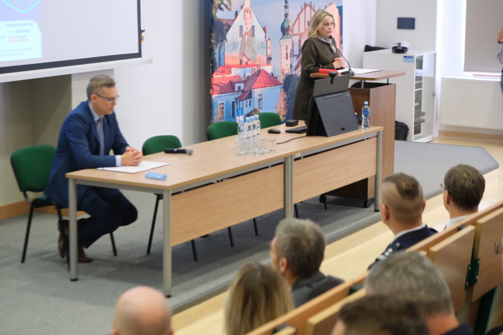 W imieniu uczelni głos zabrała Pani dr Agnieszka Woźniak Prorektor ds. rozwoju PANS w Krośnie, która podkreśliła rangę konferencji i rolę jaką odegrał Zakład Bezpieczeństwa Wewnętrznego w tym wydarzeniu.