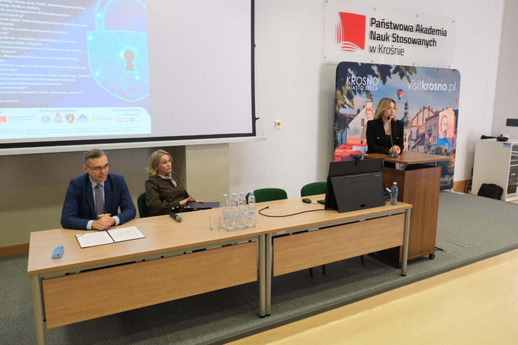 Swoje wystąpienia przedstawili pracownicy Zakładu Bezpieczeństwa Wewnętrznego PANS w Krośnie, do których należeli: prof. Jadwiga Mazur, dr Anna Słowik – Cieklińska oraz dr inż. Jacek Kędra.