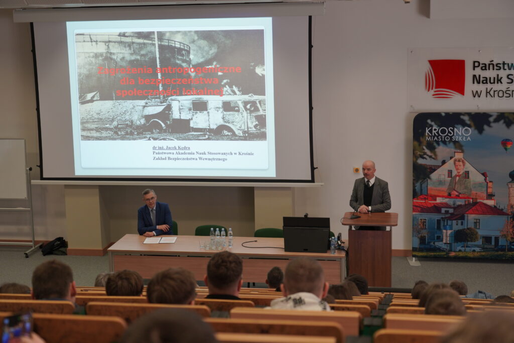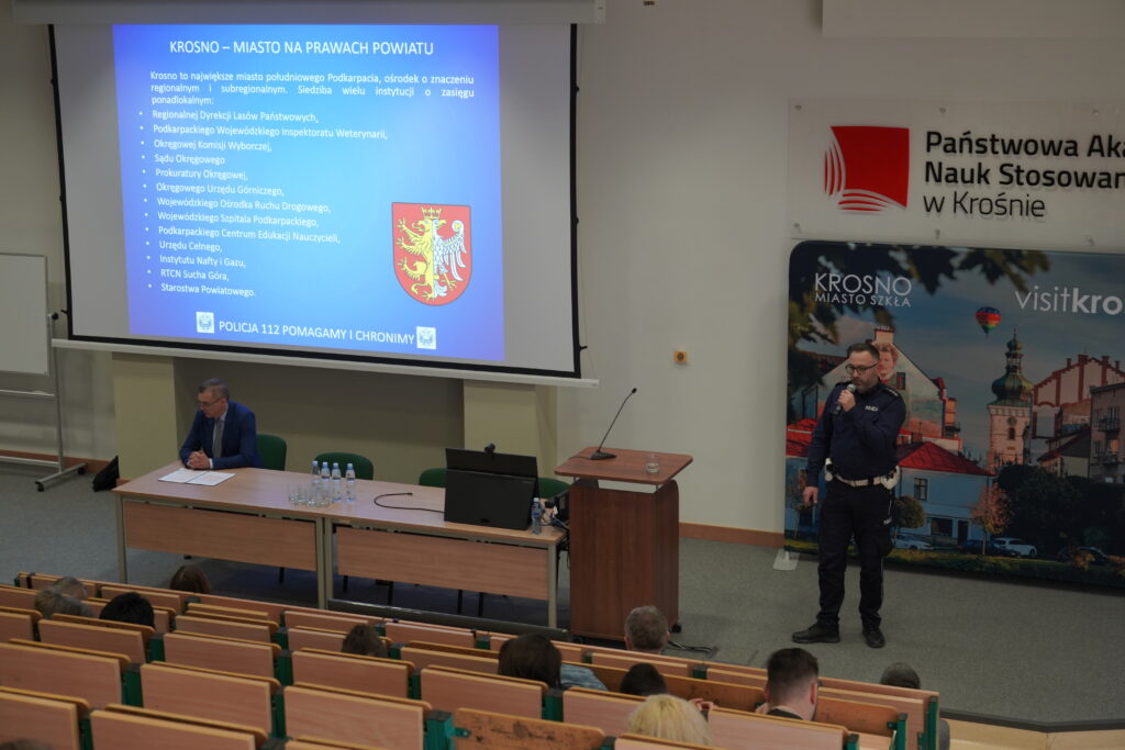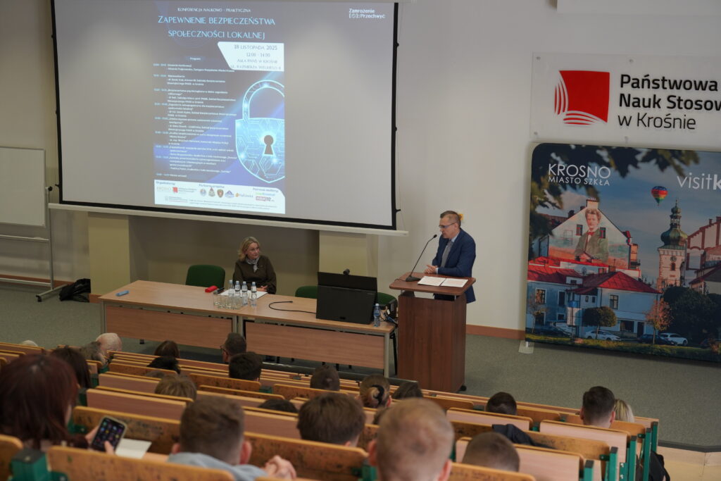 We wtorek, 18 listopada 2025 r., na auli PANS w Krośnie przy ulicy Kazimierza Wielkiego 4, odbyła się konferencja naukowo-praktyczna „Zapewnienie bezpieczeństwa społeczności lokalnych”, zorganizowana przez Zakład Bezpieczeństwa Wewnętrznego we współpracy z Miastem Krosno. Program wydarzenia przygotował i poprowadził kierownik zakładu Bezpieczeństwa Wewnętrznego- dr Jacek Kraś. W organizację konferencji zaangażowany był również mgr Maciej Rohan.
