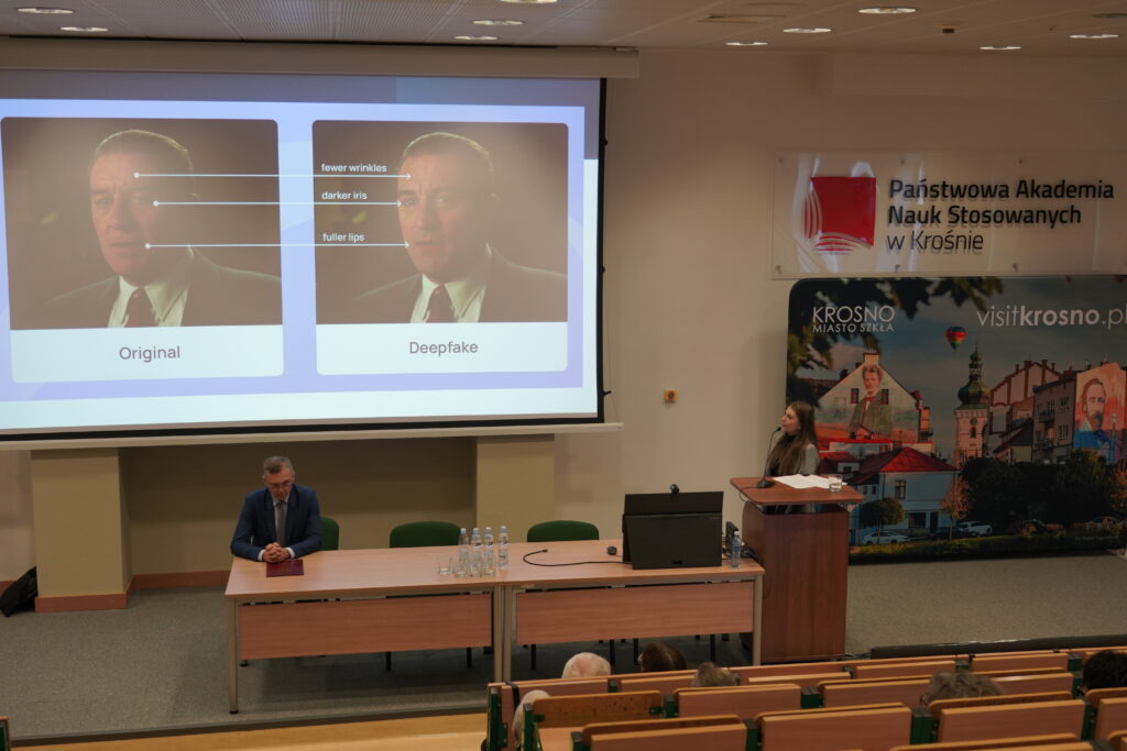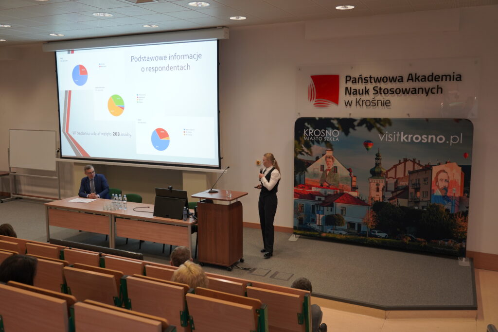 Podczas konferencji studenci mieli możliwość wysłuchania wystąpień poświęconych szeroko rozumianemu bezpieczeństwu społeczności lokalnych. Prelegentami byli między innymi pracownicy Zakładu Bezpieczeństwa Wewnętrznego: dr hab. Jadwiga Mazur, prof. PANS w Krośnie (Bezpieczeństwo psychologiczne w dobie zagrożenia militarnego), dr Anna Słowik-Cieklińska (Analiza etyczno-prawna zastosowań sztucznej inteligencji) oraz dr inż. Jacek Kędra (Zagrożenia antropogeniczne dla bezpieczeństwa społeczności lokalnej). Przedstawili oni swoje tematy zarówno z perspektywy teoretycznej, jak i praktycznej, zwracając uwagę na realne wyzwania i działania związane z zapewnianiem bezpieczeństwa publicznego. Starszy aspirant Wojciech Stefański z Komendy Miejskiej Policji w Krośnie przedstawił wystąpienie dotyczące analizy bezpieczeństwa w ruchu drogowym na terenie miasta Krosna. Istotnym punktem forum były wystąpienia studentek II i III roku kierunku Bezpieczeństwo Wewnętrzne- członkiń Interdyscyplinarnego Studenckiego Koła Naukowego „Temida” – Pauliny Penar (Sposoby przeciwdziałania cyberzagrożeniom i manipulacjom informacyjnym w mediach społecznościowych) i Beaty Rogaczewskiej (Częstotliwość wysyłania alertów RCB, a ich odbiór wśród społeczeństwa).