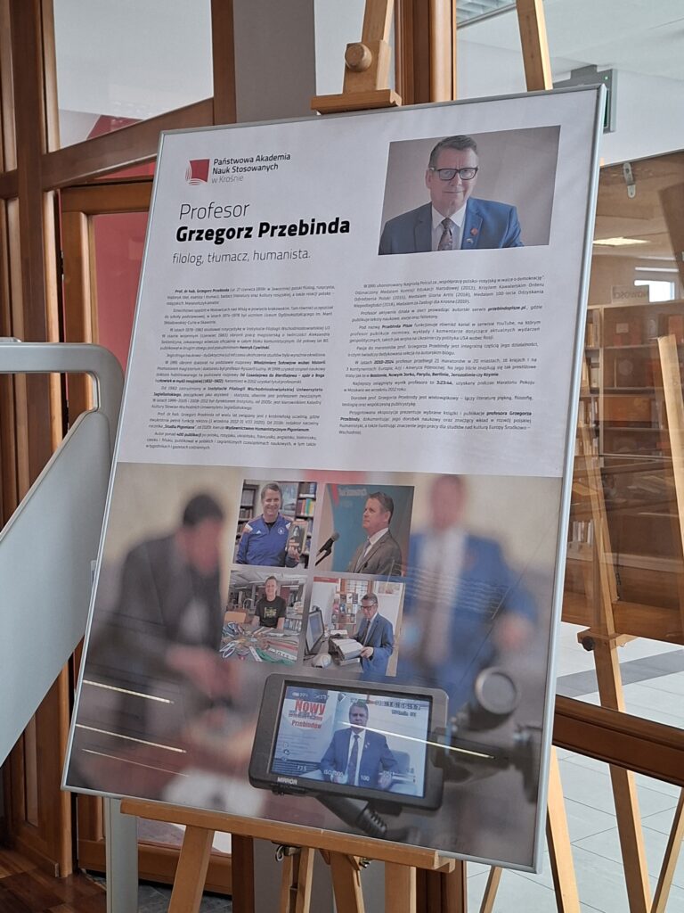 Dorobek prof. Grzegorza Przebindy jest wielowątkowy – łączy literaturę piękną, filozofię, teologię oraz współczesną publicystykę. Przygotowana ekspozycja prezentuje wybrane książki i publikacje profesora Grzegorza Przebindy, dokumentując jego dorobek naukowy oraz znaczący wkład w rozwój polskiej humanistyki, a także ilustrując znaczenie jego pracy dla studiów nad kulturą Europy Środkowo – Wschodniej.