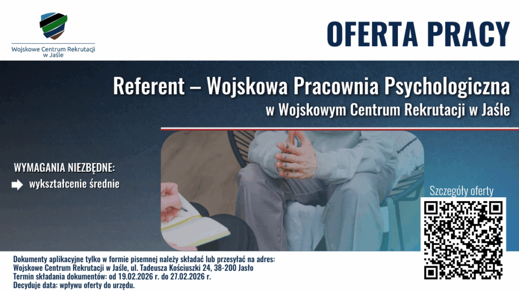 Ogłoszenia o naborze na wolne stanowisko w Wojskowym Centrum Rekrutacji w Jaśle. Referent – Wojskowa Pracownia Psychologiczna