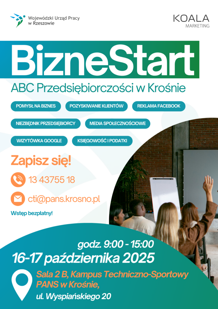 Zapraszamy studentów na BizneStart – ABC Przedsiębiorczości w Krośnie, czyli dwa dni warsztatów, podczas których poznasz podstawy zakładania i rozwijania działalności.