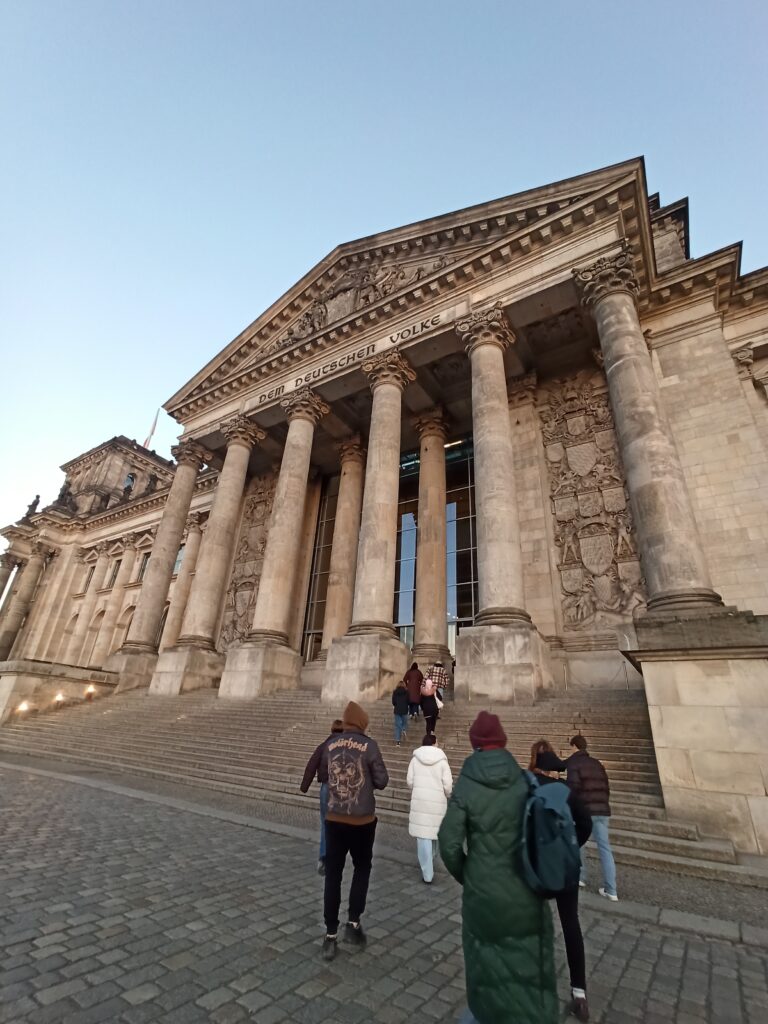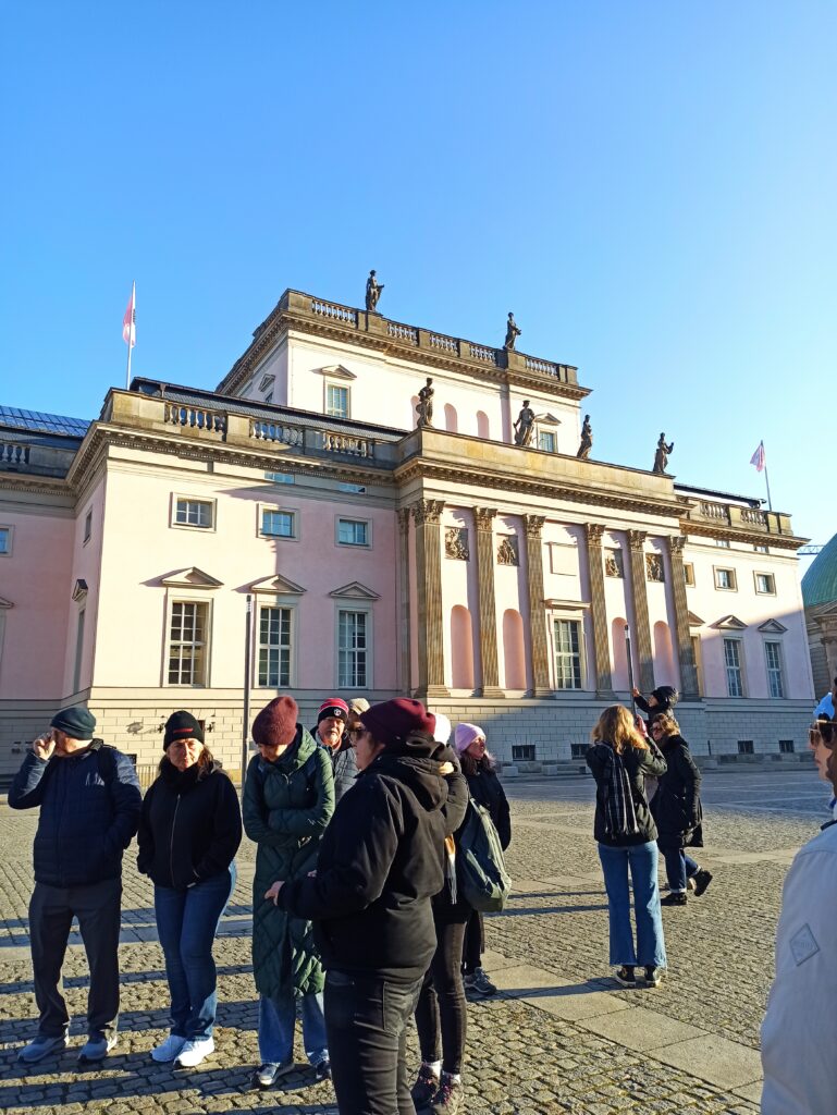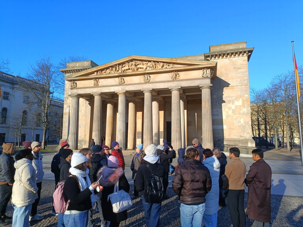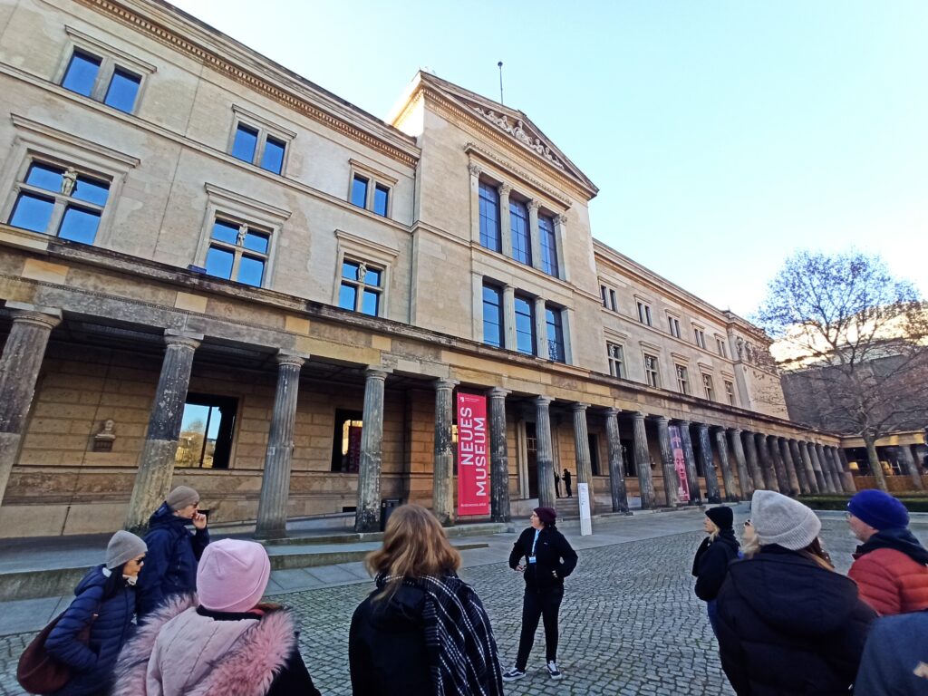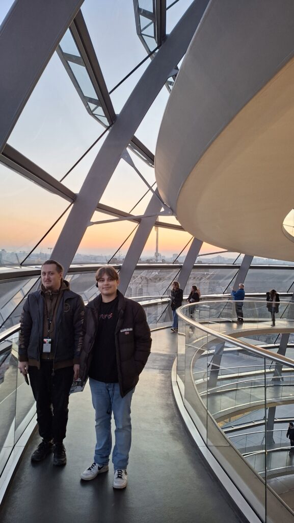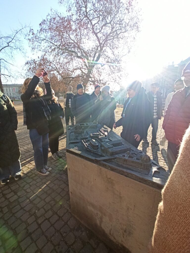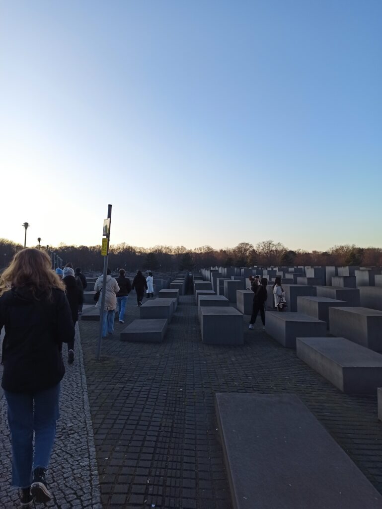 W środę zaczęliśmy zwiedzanie od spaceru z przewodnikiem po najważniejszych atrakcjach Berlina. Pani przewodnik bardzo szczegółowo i ciekawie opowiedziała o wszystkich atrakcjach i chętnie odpowiadała na nasze pytania. Swoją przygodę rozpoczęliśmy przy moście Friedrichsbrücke nad rzeką Szprewą, która stanowi ważny punkt orientacyjny i komunikacyjny w sercu Berlina. Następnie udaliśmy się na Wyspę Muzeów, gdzie znajduje się kompleks pięciu słynnych muzeów wpisanych na Listę Światowego Dziedzictwa UNESCO, prezentujących dzieła sztuki i skarby historyczne od starożytności po XIX wiek. Dalej przeszliśmy przez ogród Lustgarten – miejsce wypoczynku dla turystów chcących zwiedzić ewangelicką katedrę Berliner Dom, nawiązującą stylem do renesansu i baroku. Kolejnym przystankiem wycieczki był Bebelplatz – historyczny plac w centrum Berlina otoczony zabytkowymi budynkami takimi jak Opera Państwowa i Katedra św. Jadwigi. Plac zapisał się w historii jako miejsce, gdzie naziści palili książki. W jego centralnej części placu, pod ziemią, znajduje się symboliczny pomnik w formie pomieszczenia z pustymi regałami. Kolejnym punktem wycieczki był Checkpoint Charlie, czyli jedno z przejść granicznych między Berlinem Zachodnim a Wschodnim w czasach zimnej wojny, symbol podziału miasta. Idąc dalej zobaczyliśmy fragmenty muru berlińskiego i miejsce, gdzie znajdował się kompleks schronów przeciwlotniczych Führerbunker, gdzie ukrywał się Hitler. Ważnym punktem wycieczki był Pomnik Pomordowanych Żydów Europy, upamiętniający ofiary Holocaustu. Wycieczka zakończyła się przy słynnej Bramie Brandenburskiej – jednym z najbardziej rozpoznawalnych symboli Berlina.