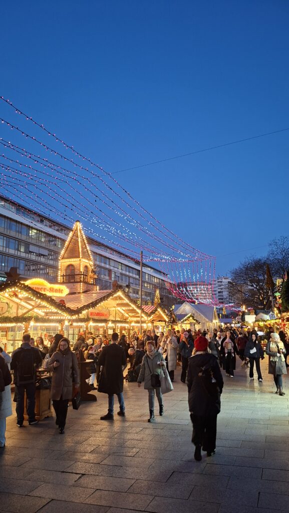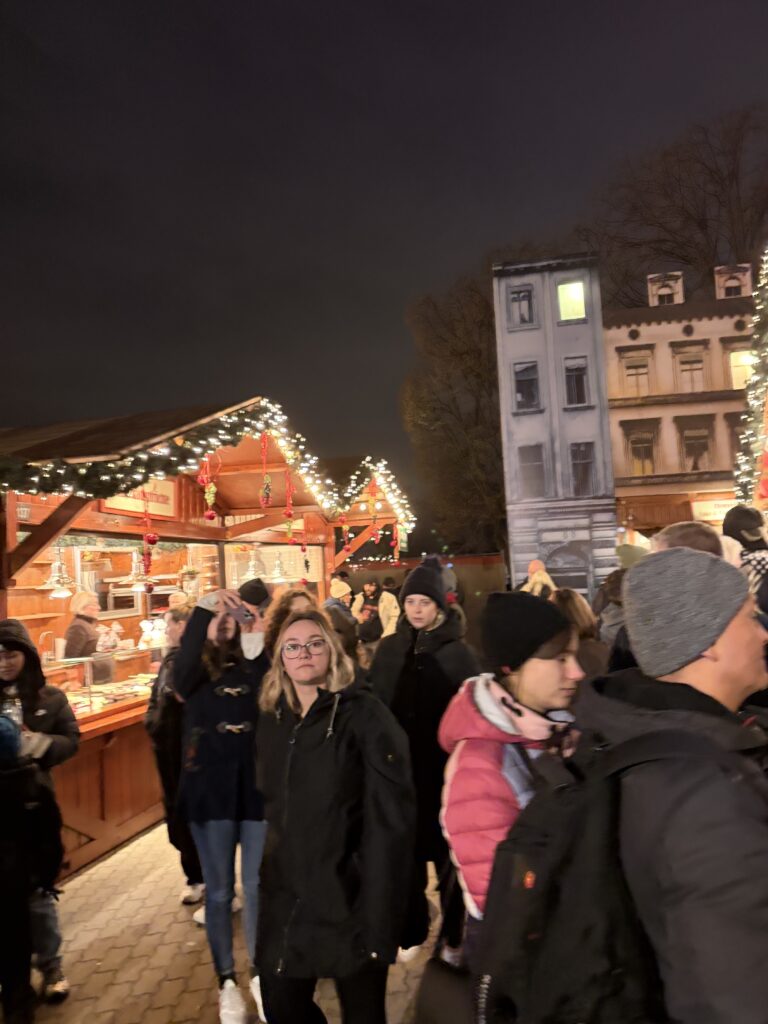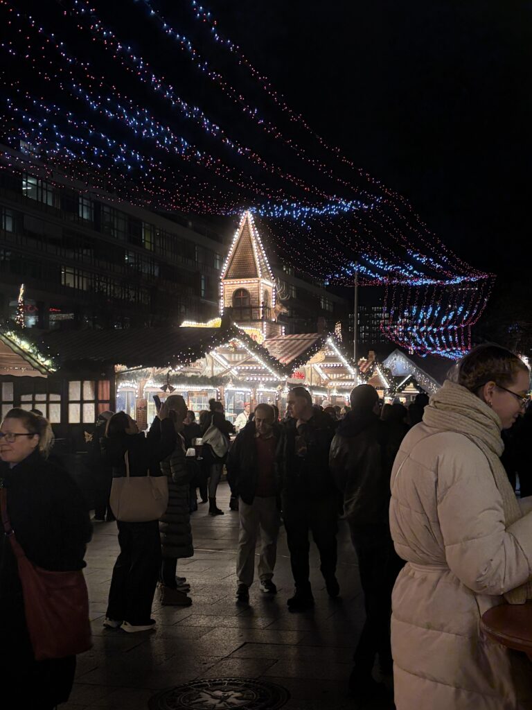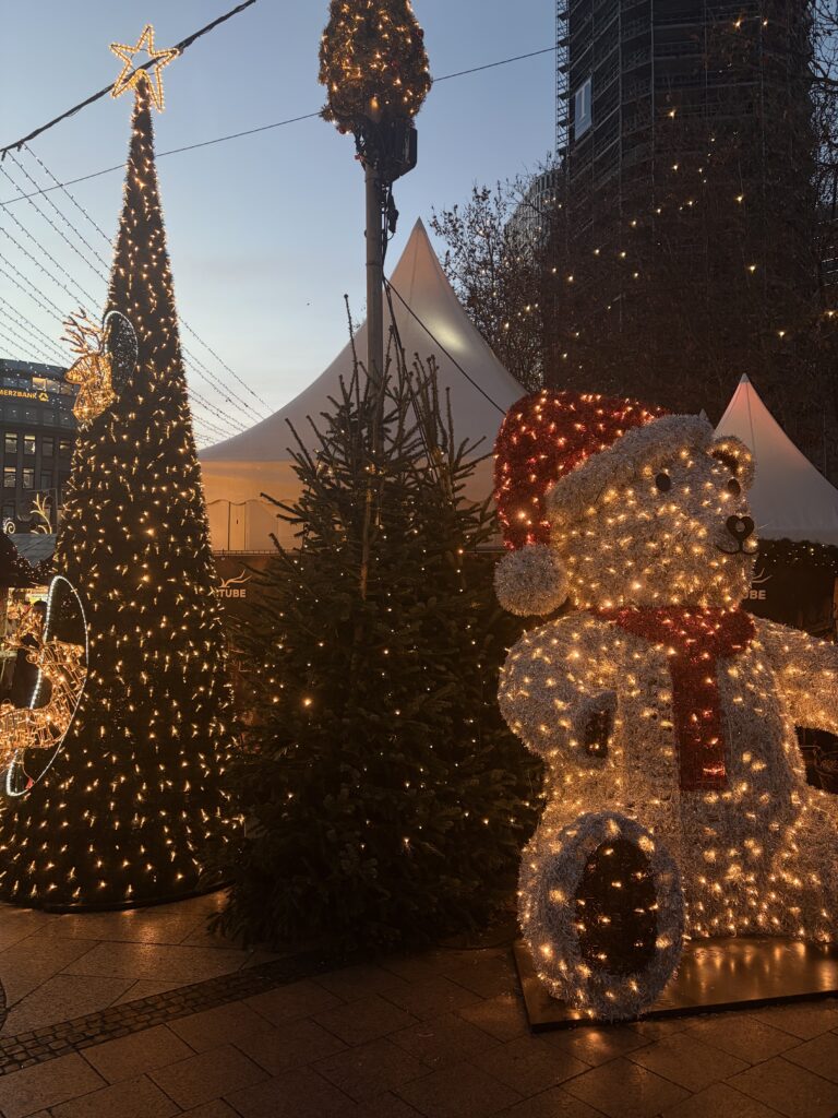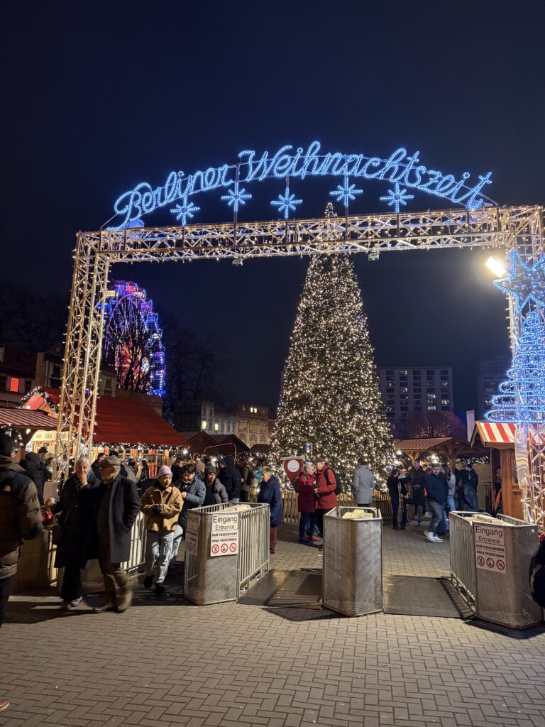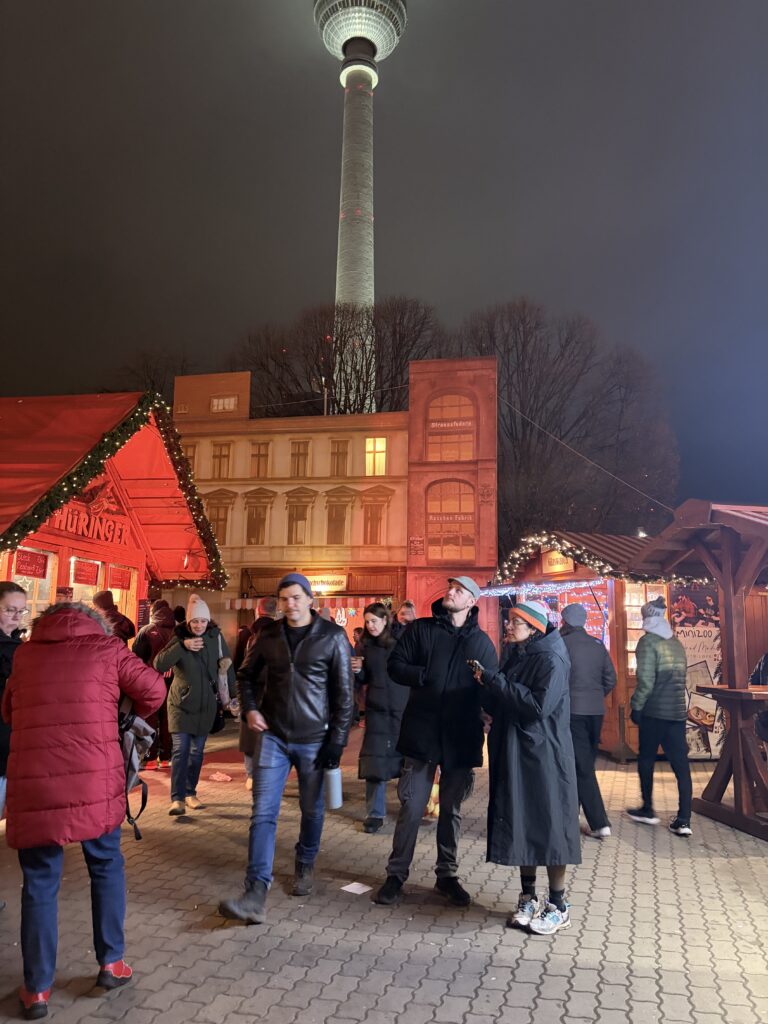 Również w środę odwiedziliśmy nasz pierwszy berliński Weihnachtsmarkt. W sumie odwiedziliśmy trzy popularne jarmarki bożonarodzeniowe: na Potsdamer Platz, Alexanderplatz oraz Breitscheidplatz. Każde z tych miejsc wyróżniało się inną atmosferą i formą organizacji, ukazując zarówno nowoczesne, jak i tradycyjne oblicze berlińskich jarmarków świątecznych. Zapoznaliśmy się z charakterystycznymi elementami niemieckich tradycji bożonarodzeniowych, lokalną ofertą kulinarną, rękodziełem oraz świątecznymi dekoracjami.