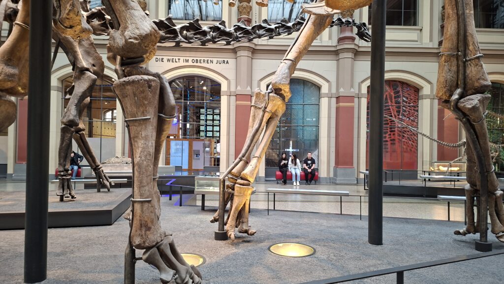 W piątek 19 grudnia nasza grupa odwiedziła Muzeum Historii Naturalnej w Berlinie. Na samym początku mogliśmy podziwiać wystawę dinozaurów – główną atrakcją był największy na świecie szkielet Brachiosaurus brancai (13,27 m wysokości!). Wystawa oferuje także interaktywne elementy, które pokazują dinozaury w ich naturalnym środowisku. Zagłębiając się w dalsze części muzeum mogliśmy zobaczyć wystawy o Ziemi, o układzie słonecznym, wystawę o ewolucji zwierząt, wystawę minerałów i wiele innych. Zobaczyliśmy autentycznie kości dinozaurów, szeroką kolekcję minerałów pozyskiwanych z całego świata oraz wiele okazów zwierząt, zakonserwowanych dzięki taksydermi.