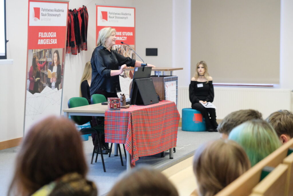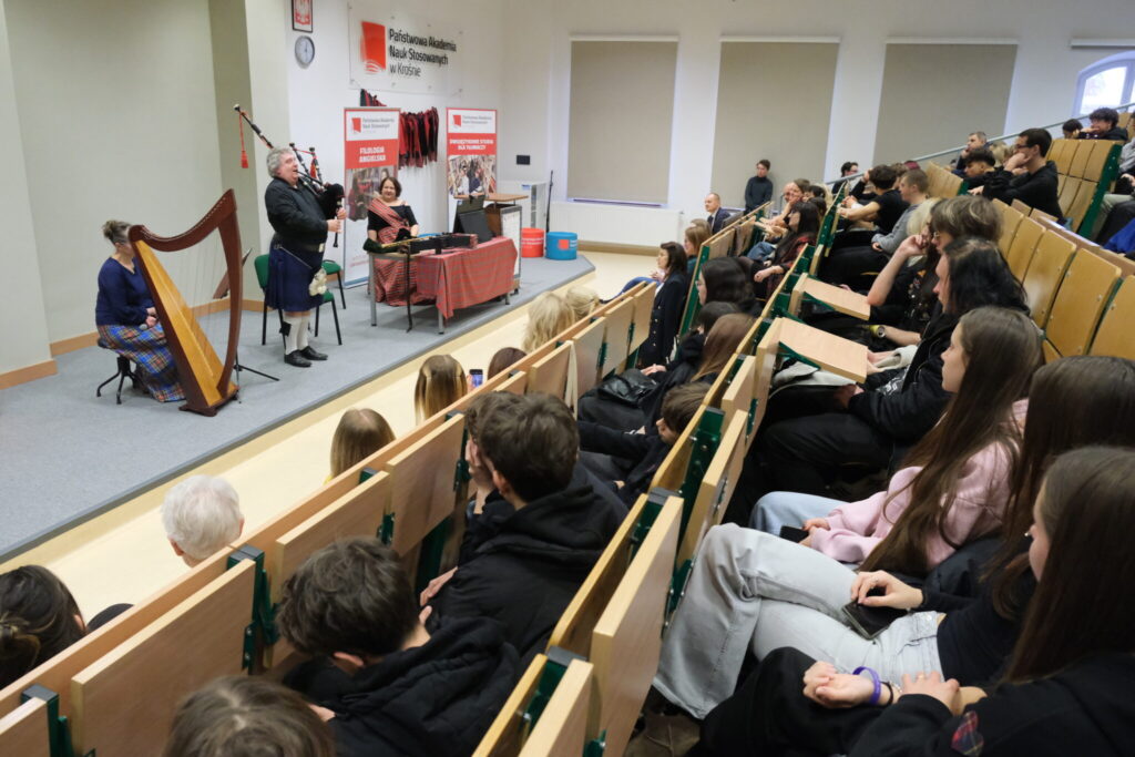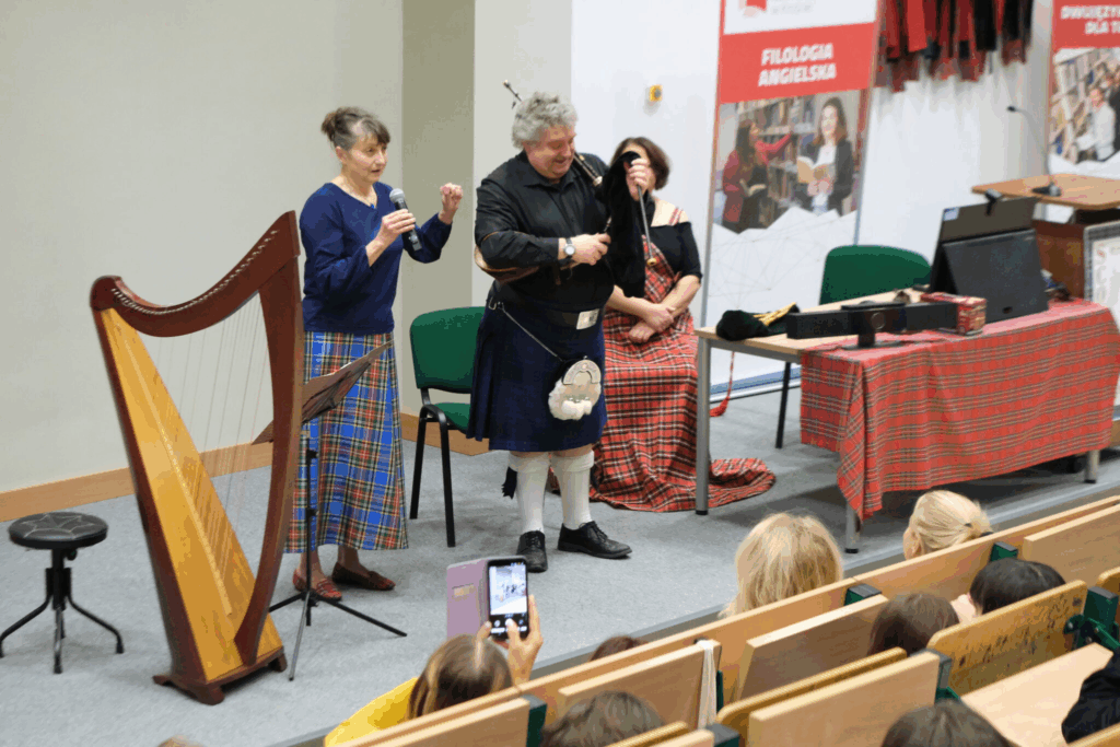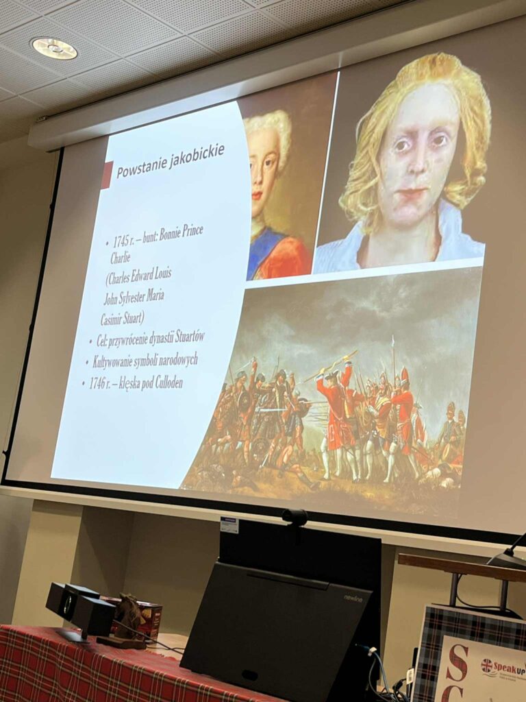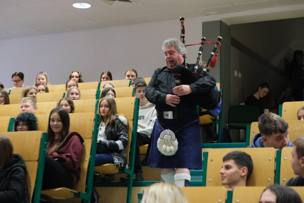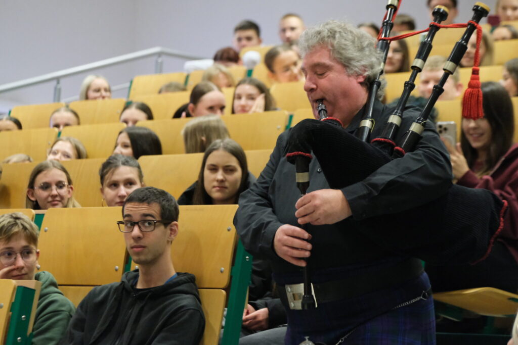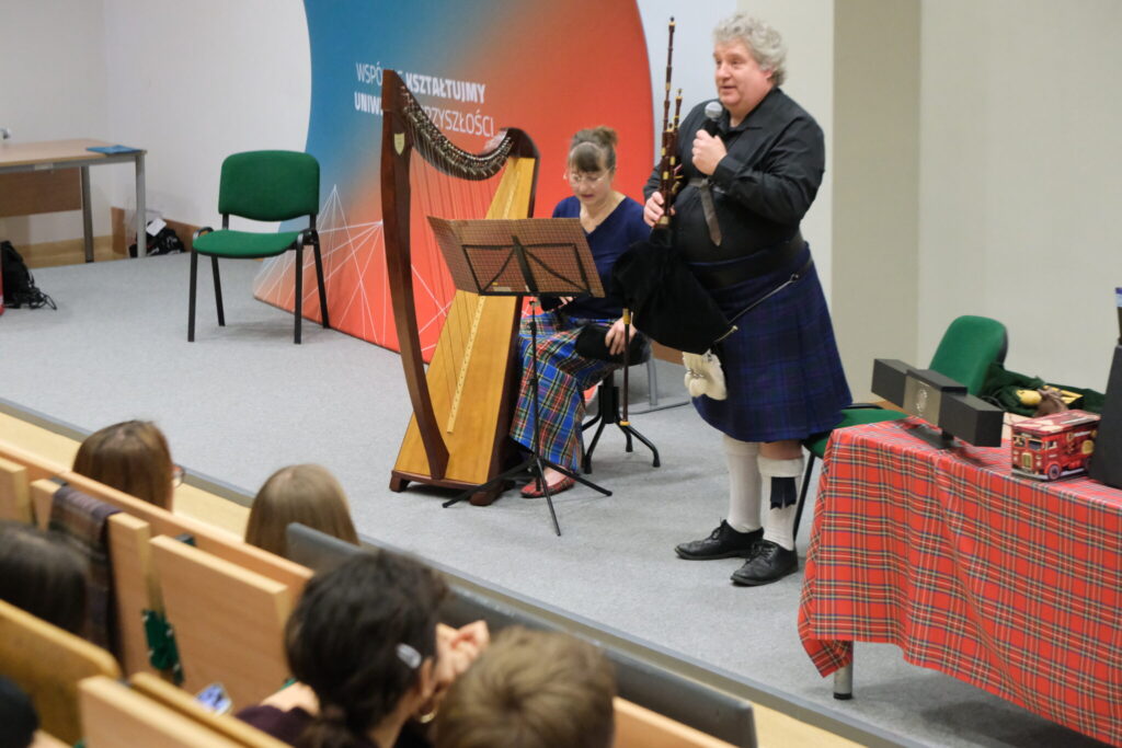 Na rozgrzewkę były warsztaty o kulturze szkockiej, a potem dr Leszek Habrat zabrał słuchaczy w podróż przez klany, korony i kilty – i udowodnił, że Szkocja nigdy nie dała się ujarzmić tym, którzy mieli takie zapędy.