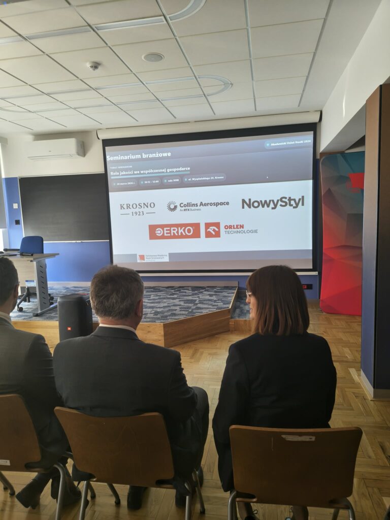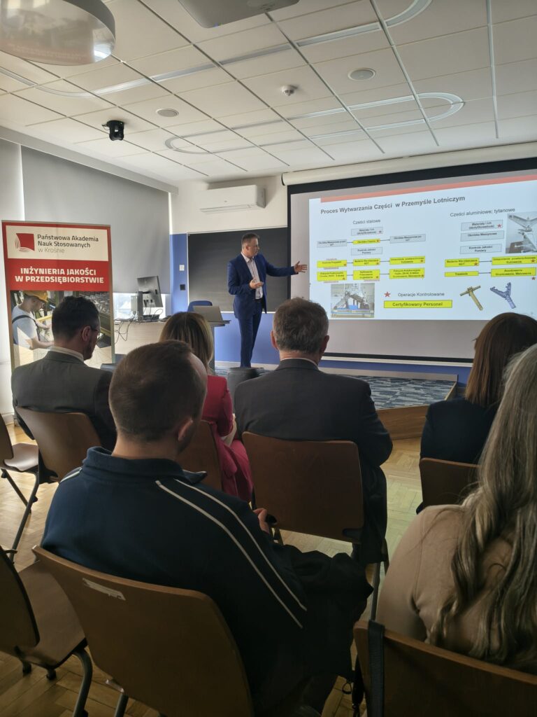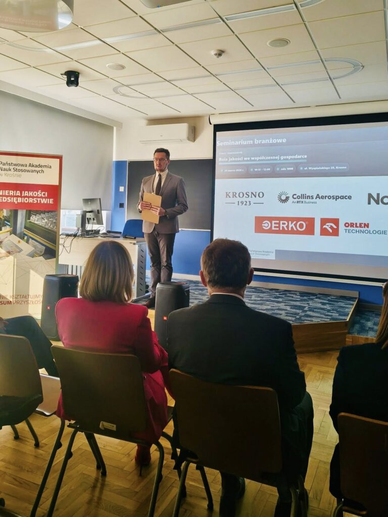 20 marca 2026 roku miało miejsce Seminarium branżowe pt. „Rola jakości we współczesnej gospodarce”, które poprowadził dr inż. Damian Dubis. Spotkanie odbyło się w ramach tegorocznej edycji Targów Pracy i Akademickiego Dnia Nauki w Państwowej Akademii Nauk Stosowanych w Krośnie. W wydarzeniu wzięli udział przedstawiciele wiodących firm w regionie. Szczególne podziękowania kierujemy do szanownych prelegentów: