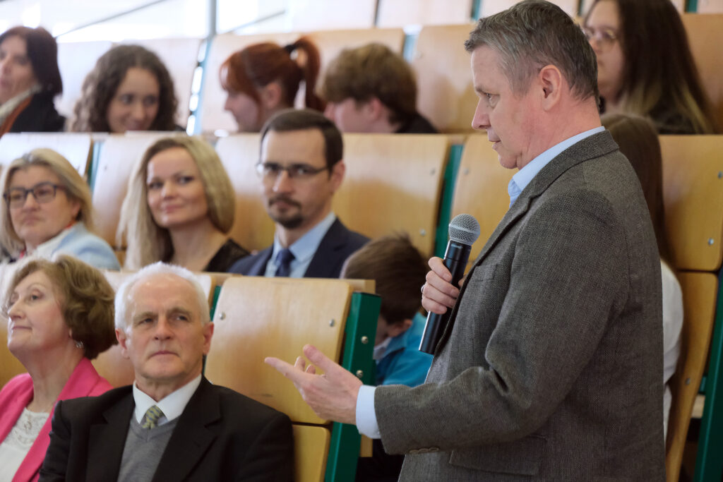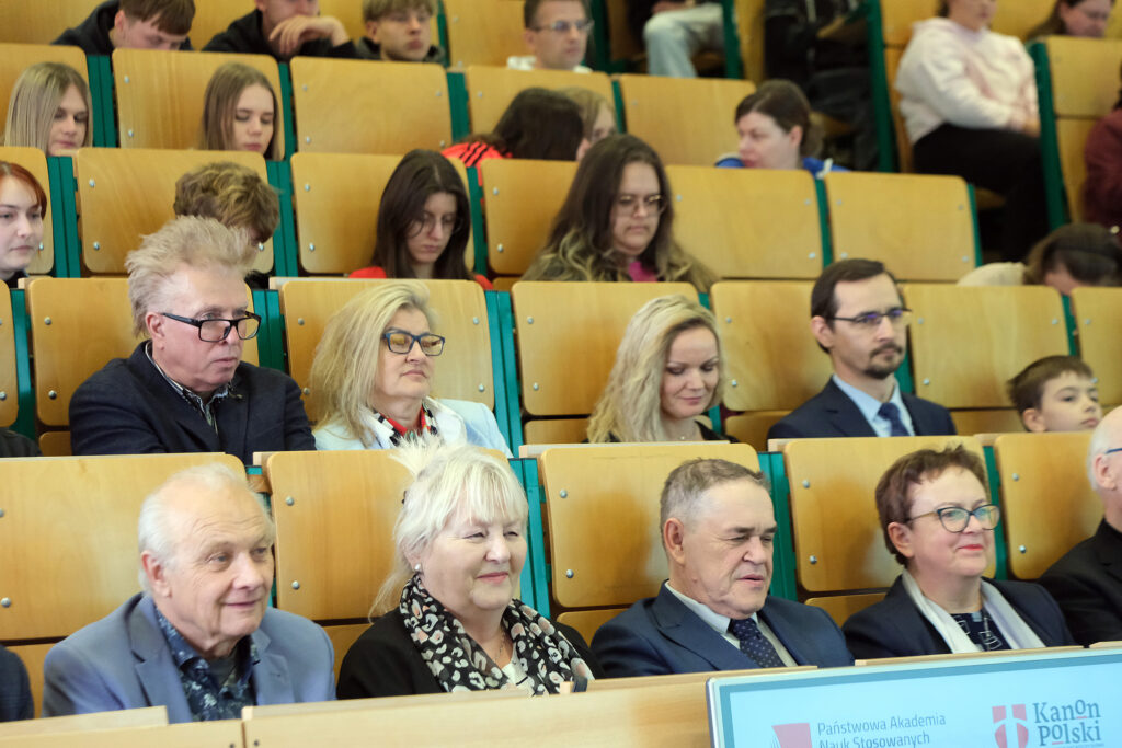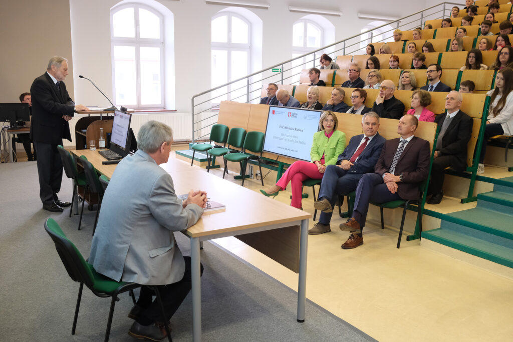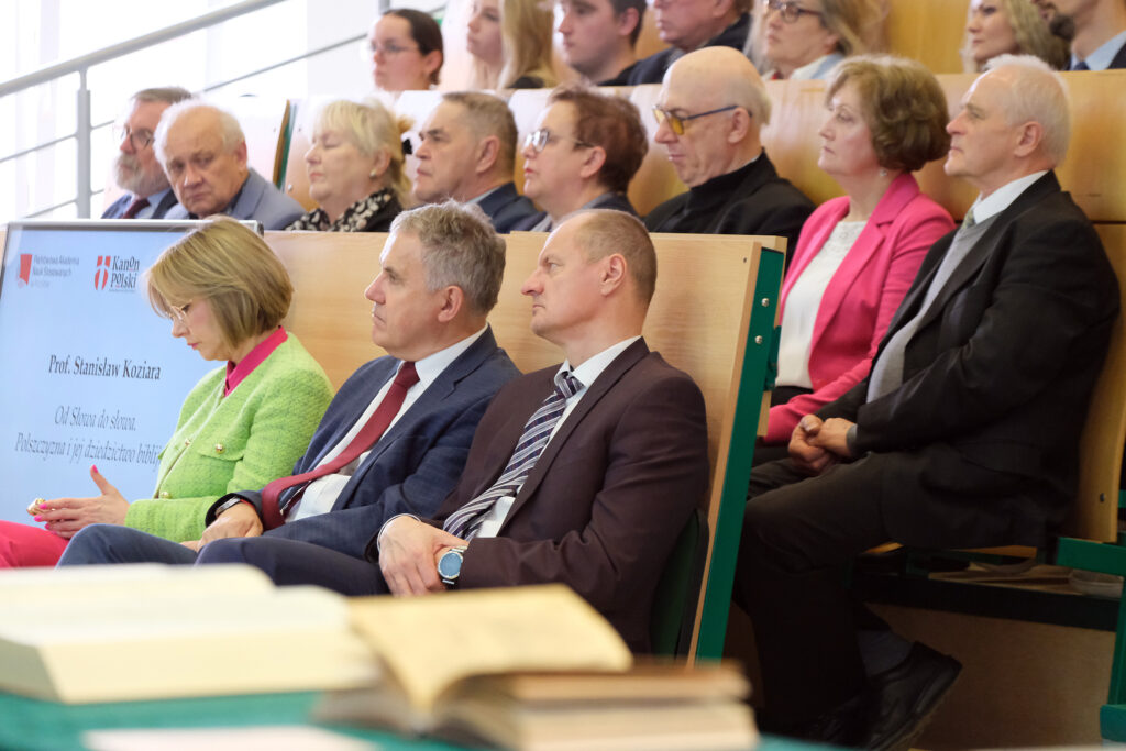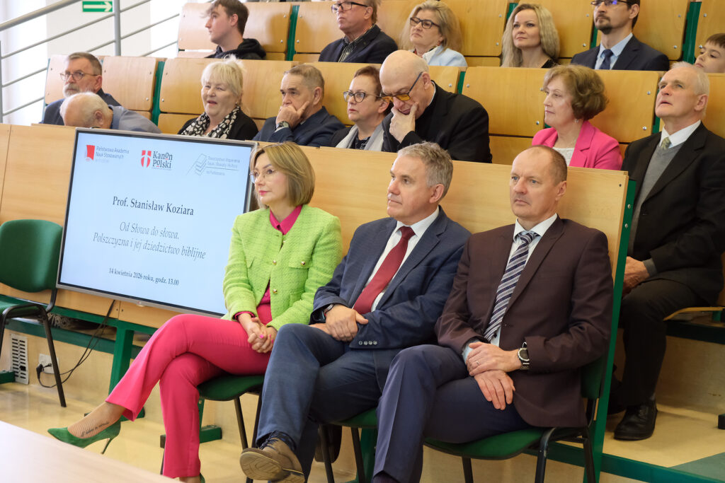 4. kwietnia 2026 roku, w 1060. rocznicę Chrztu Mieszka I w uczelnianej auli zgromadzili się liczni słuchacze – wykładowcy, studenci nauczyciele i uczniowie oraz inni, systematyczni uczestnicy otwartych wykładów o tematyce historyczno-kulturowej, aby wysłuchać wykładu zatytułowanego Od Słowa do słowa autorstwa prof. dra hab. Stanisława Koziary z Uniwersytetu Komisji Edukacji Narodowej w Krakowie. Profesor St. Koziara należy do grona najwybitniejszych polskich badaczy Biblii, jej przekładów na język polski i, co oczywiste, znaczenia dla rozwoju naszej rodzimej mowy. Profesor jest autorem książek Pojęcia wartościujące w polskich przekładach Psałterza, Frazeologia biblijna w języku polskim i Tradycyjne biblizmy a nowe polskie przekłady Pisma Świętego (ujęcie filologiczno-normatywne) oraz wielu artykułów, w tym także opublikowanych w wydawanym przez naszą naszej uczelnię w roczniku Studia Pigoniana, m.in. Spiżowe dźwięki Pigoniowej mowy.