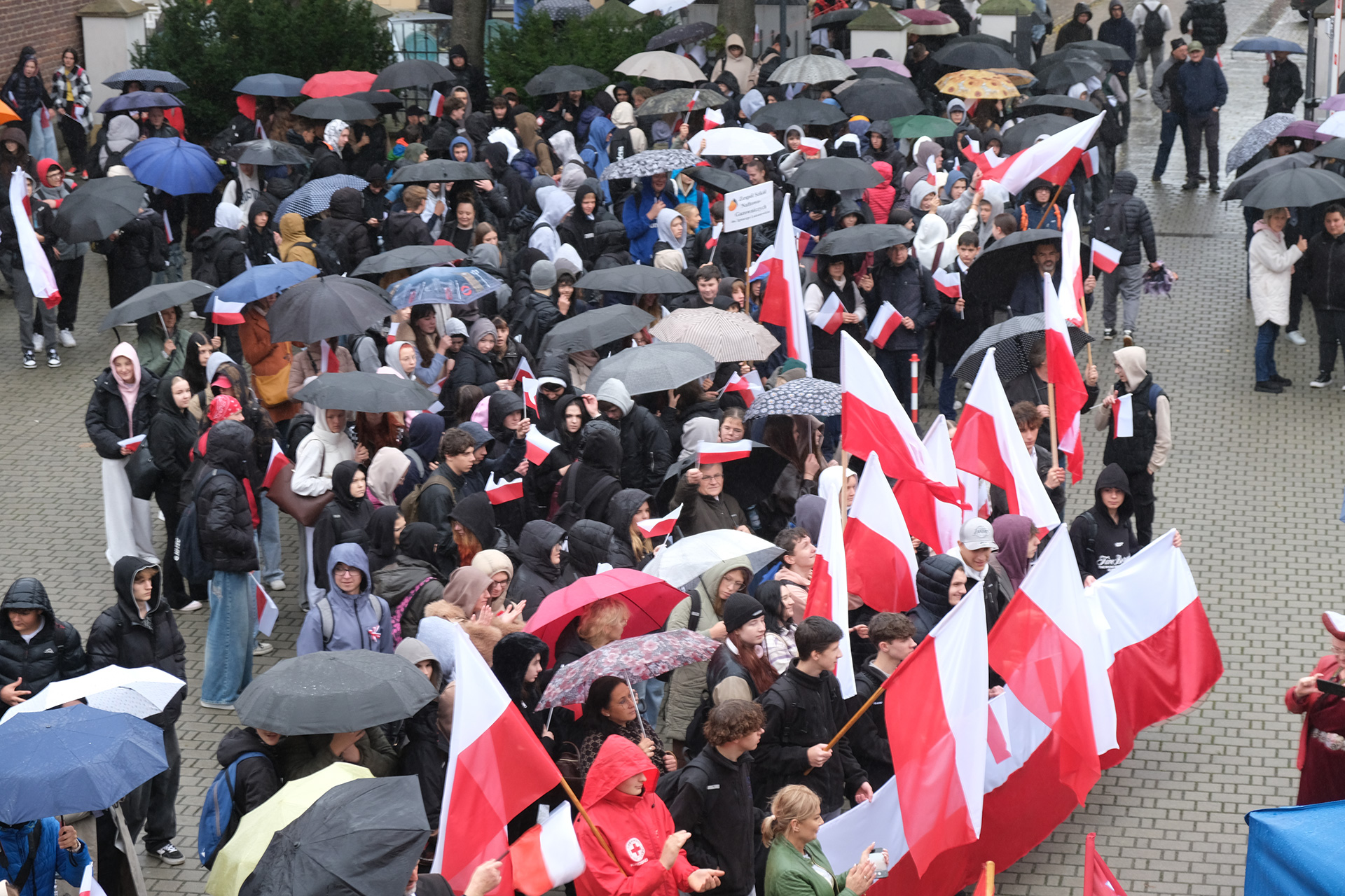 Na zakończenie uczestnicy wysłuchali koncertu pieśni patriotycznych w wykonaniu uczniów i studentów. Uczennice _”Elektryka”, Nikola Ciupa poruszająco wykonała pieśń Ojczyzna, a Natalia Zima Jest taki kraj, natomiast studentki Pedagogiki brawurowo zaśpiewały Pieśń o fladze.