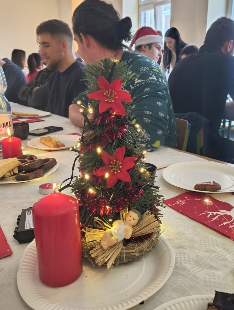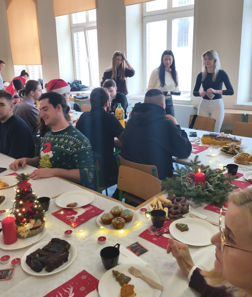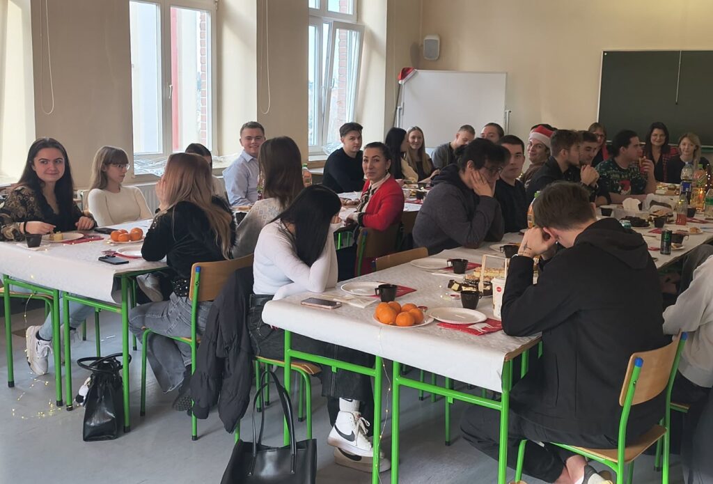 W czwartek, 19 grudnia, studenci I roku kierunku Marketing internetowy zorganizowali świąteczne spotkanie wigilijne, które sprzyjało integracji oraz budowaniu relacji w grupie. Wspólne życzenia, świąteczny poczęstunek i chwila rozmów pozwoliły poczuć wyjątkowy klimat nadchodzących świąt.