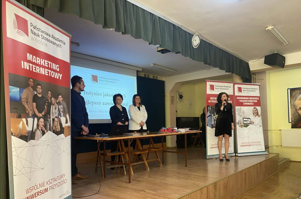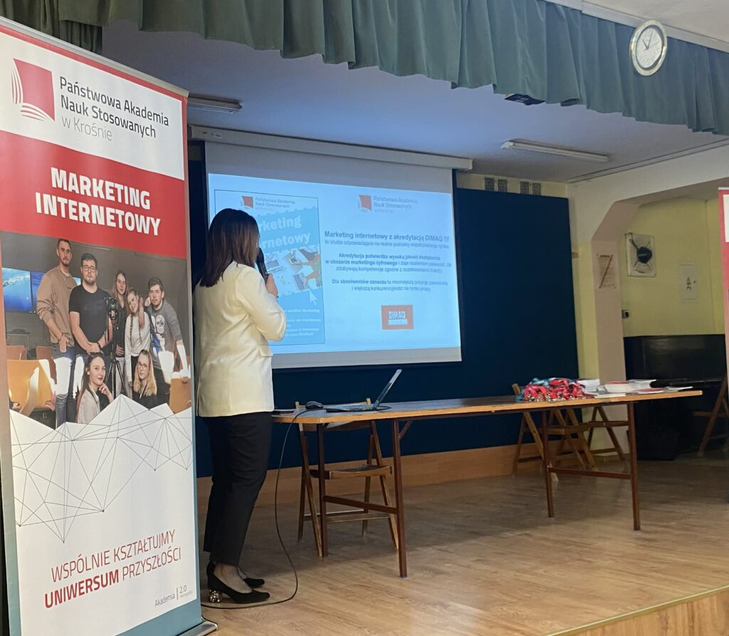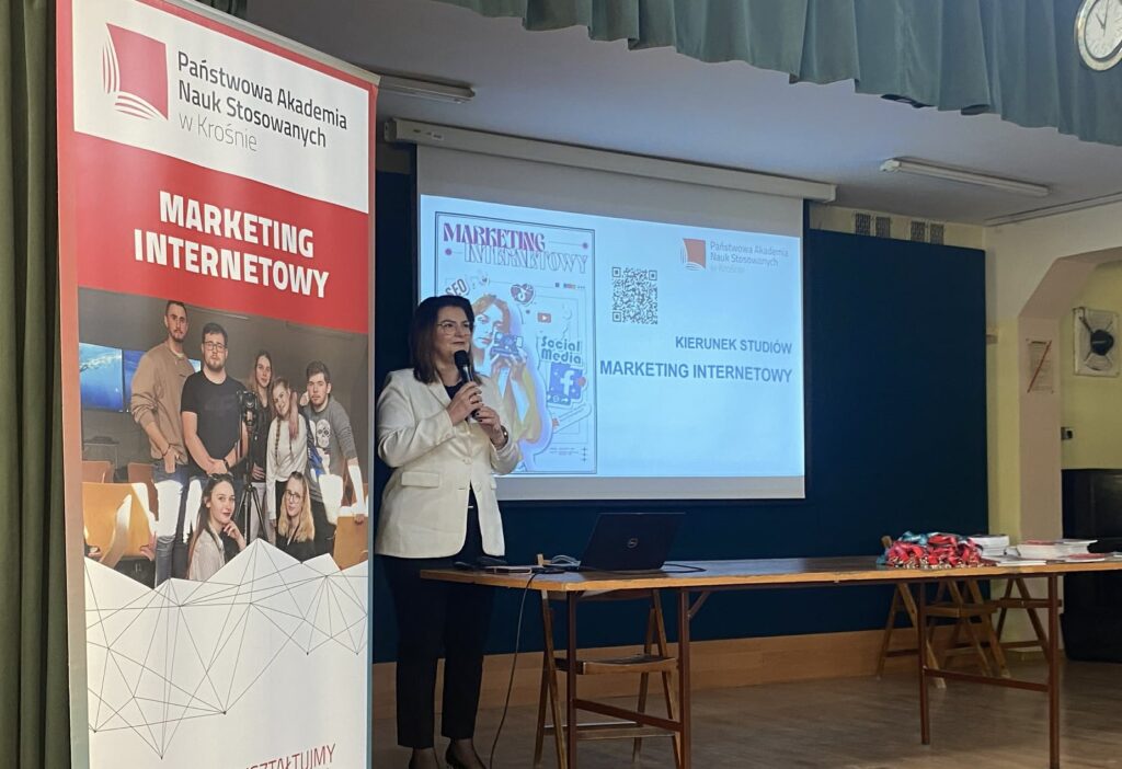 W dniu dzisiejszym 11 marca 2026 roku odbyło się spotkanie promocyjne z uczniami Zespołu Szkół nr 4 im. Jana Pawła II „Ekonomik”. Celem wizyty było zaprezentowanie oferty dydaktycznej Państwowej Akademii Nauk Stosowanych w Krośnie oraz przybliżenie specyfiki kształcenia na kierunku Marketing internetowy.