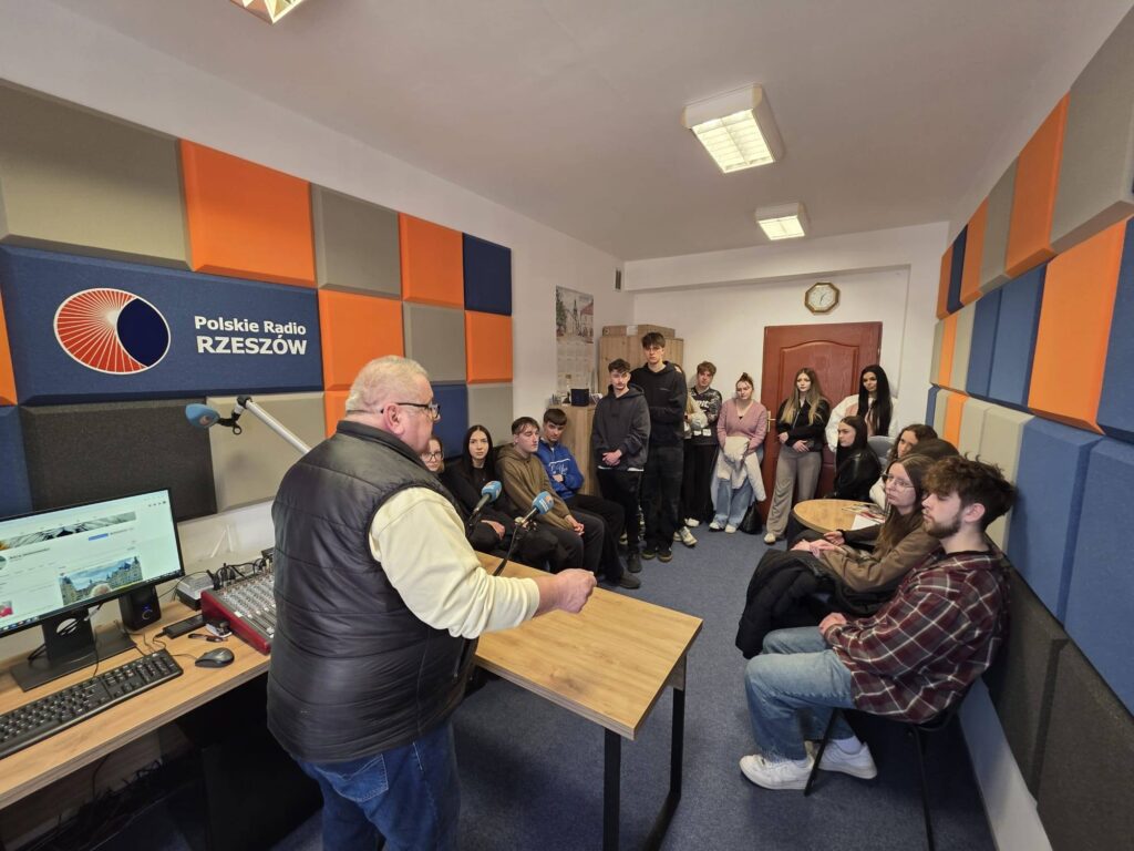 Serdecznie dziękujemy całej redakcji Polskiego Radia Rzeszów w Krośnie za ciepłe przyjęcie oraz możliwość zdobycia cennej i inspirującej wiedzy, a Pani mgr Wioletcie Zimmermann-Szubrze za zorganizowanie tego wyjścia.