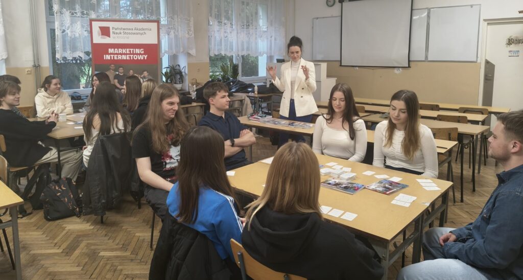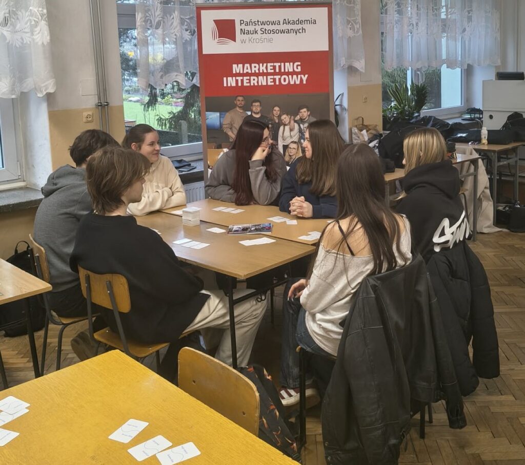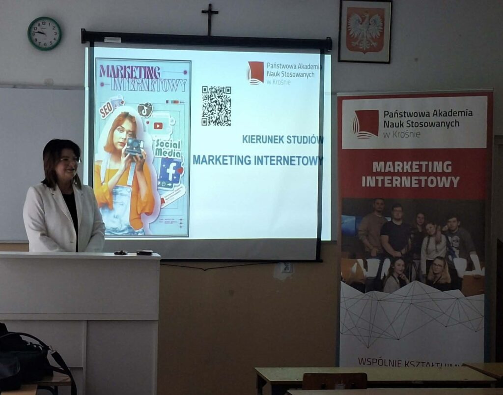 W ramach działań promujących ofertę dydaktyczną Państwowej Akademii Nauk Stosowanych w Krośnie wykładowcy Zakładu Marketingu wraz z grupą studentów odwiedzili Zespół Szkół Elektrycznych i Ogólnokształcących w Krośnie – III Liceum Ogólnokształcące – klasę maturalną o profilu matematyczno-geograficznym, gdzie przeprowadzili warsztaty dla uczniów. Ofertę Uczelni oraz kierunku Marketing internetowy przedstawiła dr inż. Małgorzata Górka, kierownik Zakładu Marketingu.
