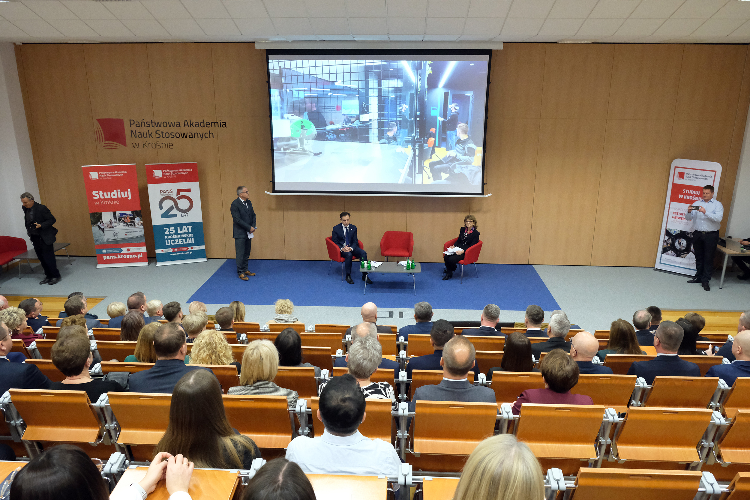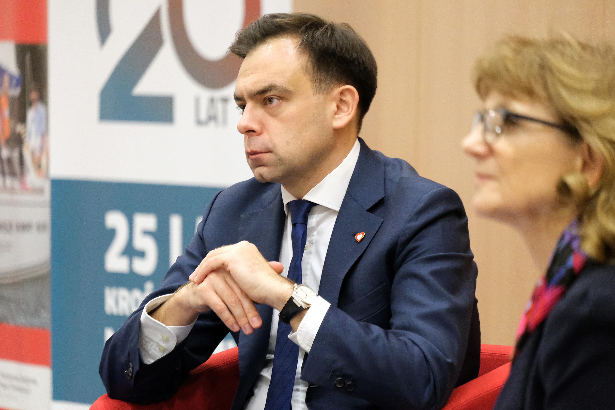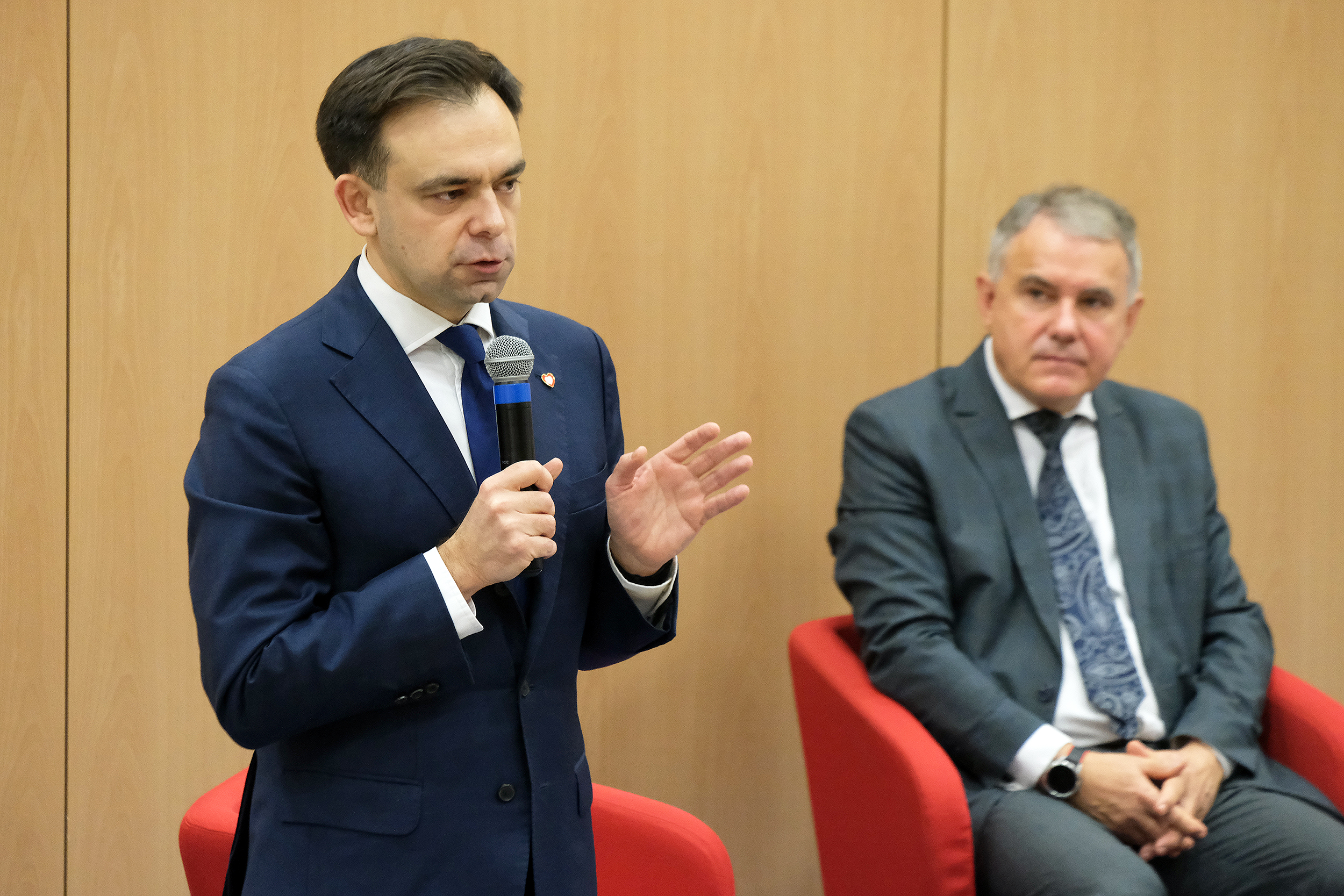 Minister Finansów Andrzej Domański spotkał się z podkarpackimi samorządowcami w Państwowej Akademii Nauk Stosowanych w Krośnie. Rozmawiał z nimi o reformie dochodów jednostek samorządu terytorialnego.