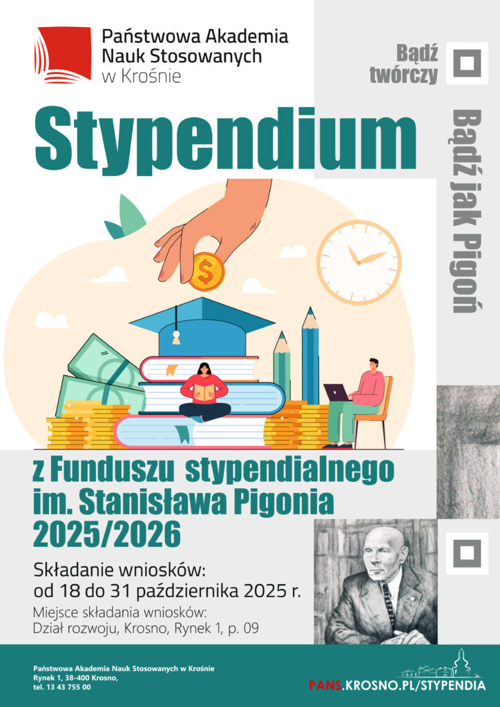Pracowników i studentów Państwowej Akademii Nauk Stosowanych w Krośnie zapraszamy do składania wniosków o przyznanie stypendium z Funduszu stypendialnego im. Stanisława Pigonia na rok akademicki 2025/2026.