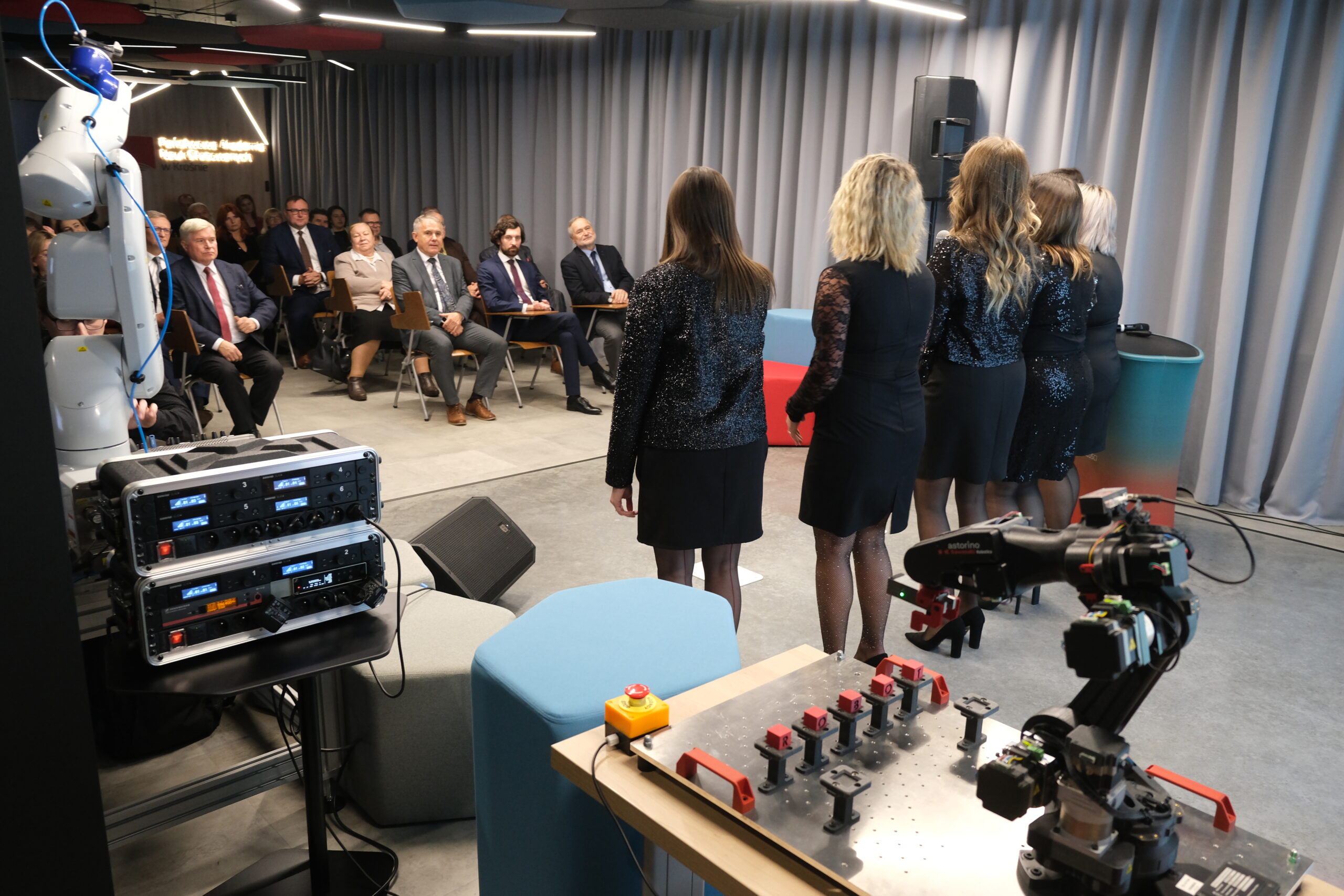 Wydarzenie rozpoczęło się o godzinie 17:00 w budynku Instytutu Politechnicznego PANS w Krośnie. Gości powitała kameralna, ale dynamiczna atmosfera. Rozbrzmiewająca muzyka w wykonaniu lokalnego zespołu Indygo nadała wieczorowi wyjątkowy klimat. – „Za mali, żeby podskoczyć, a jednak jesteśmy w jednym z najnowocześniejszych laboratoriów w Polsce. Witajcie w naszej bajce!” – powiedział prowadzący wydarzenie, wprowadzając gości w nowoczesny świat technologii.
