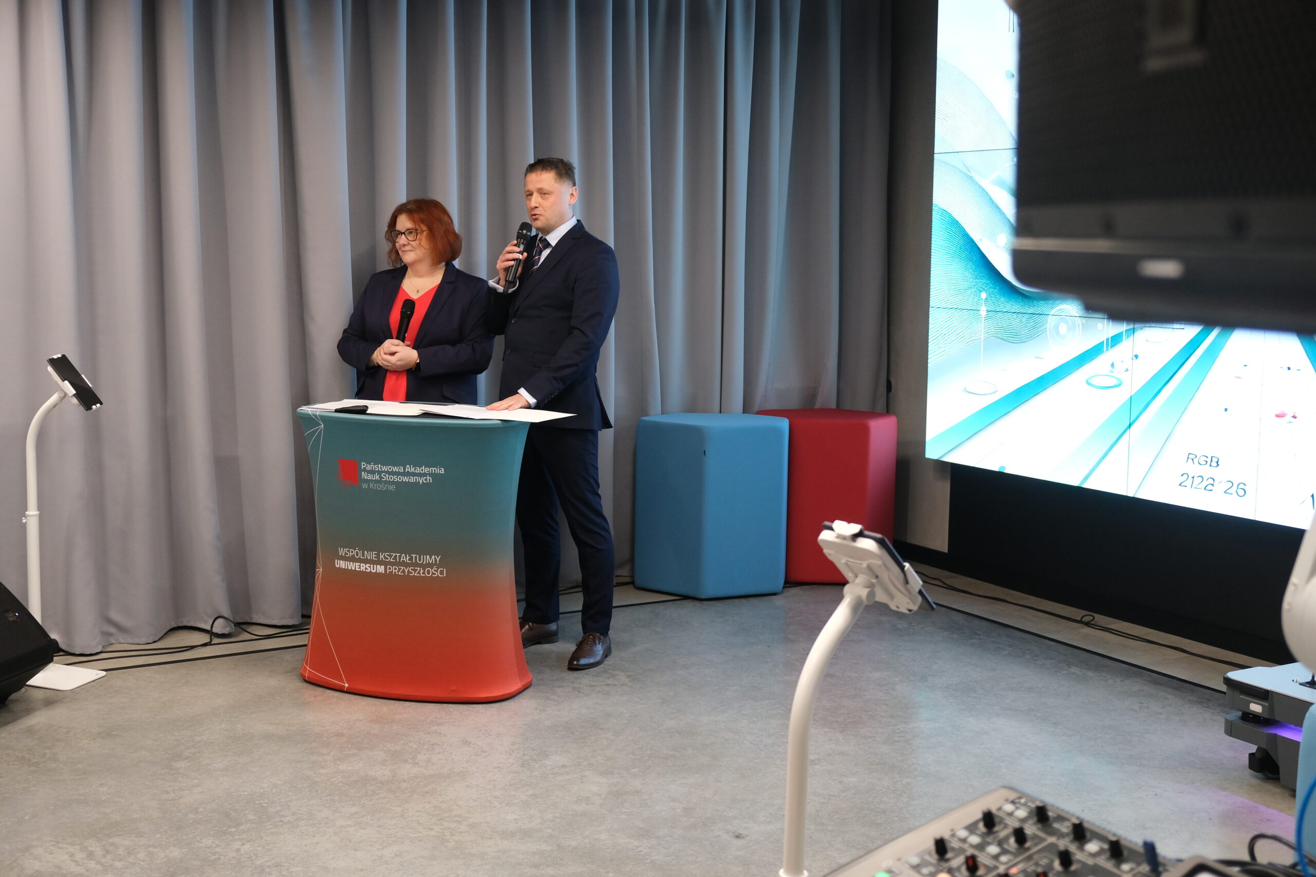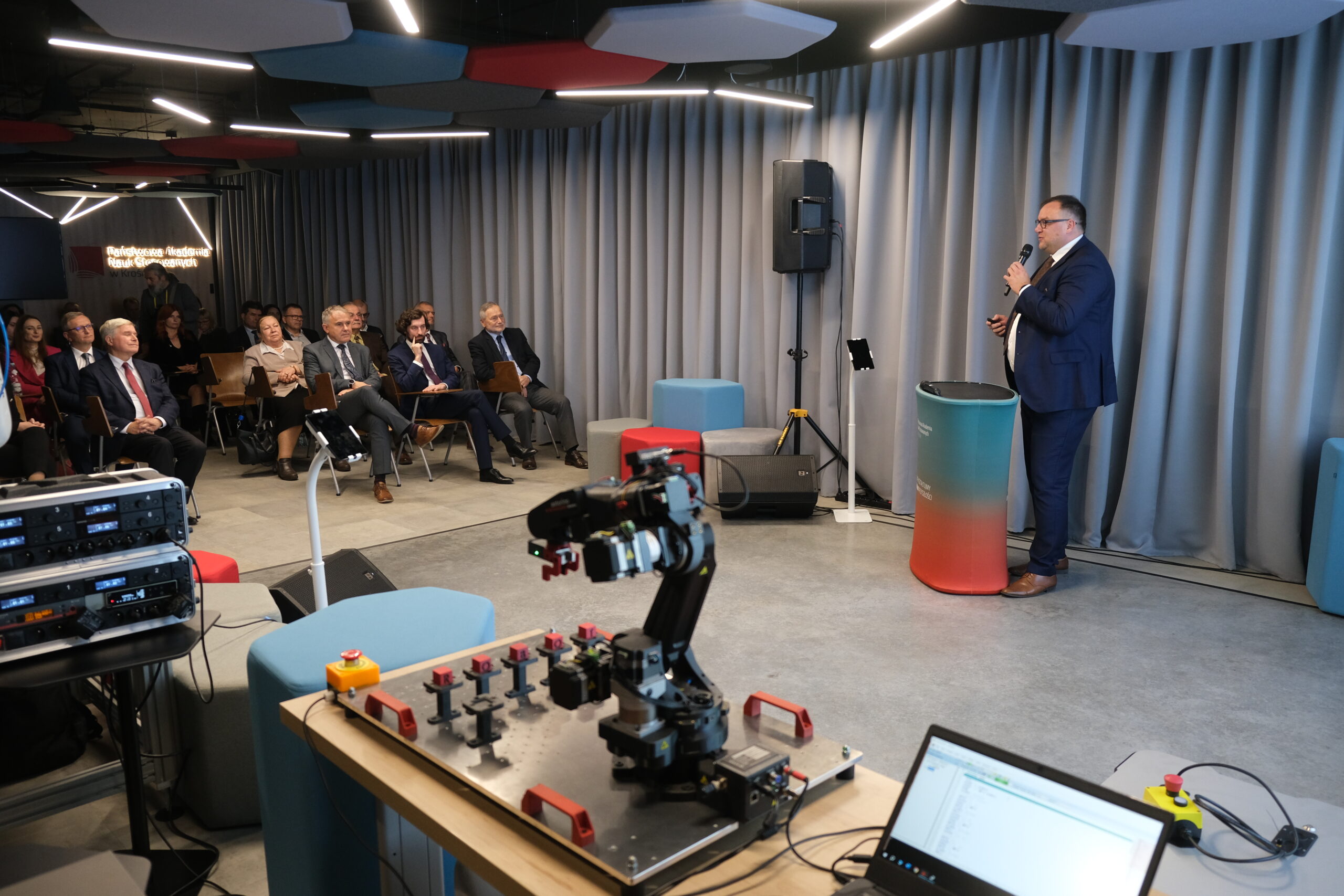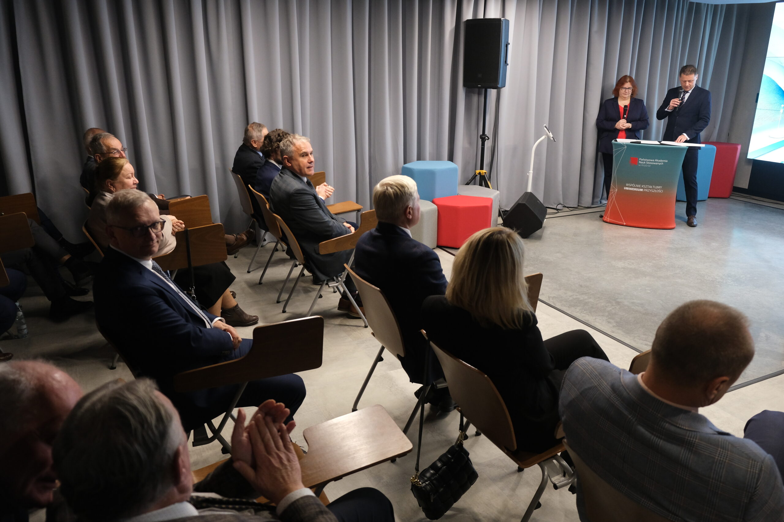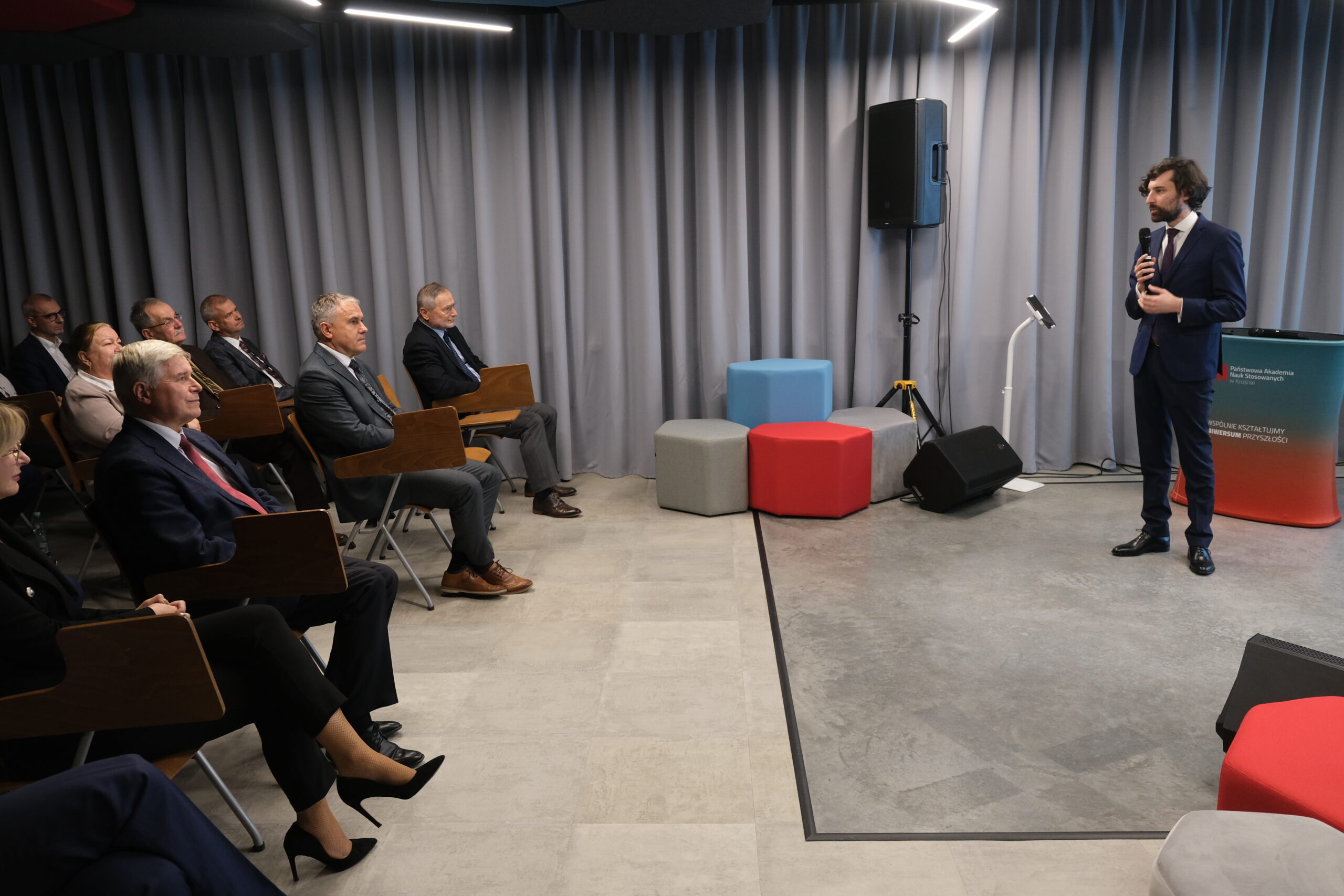 Uczestników uroczystości powitali Dyrektor Instytutu Politechnicznego dr inż. Piotr Wais oraz Kierownik Zakładu Informatyki dr inż. Agnieszka Kubacka. Podczas otwarcia głos zabrali kluczowi partnerzy i przedstawiciele projektu. Rektor Państwowej Akademii Nauk Stosowanych w Krośnie, dr hab. Zbigniew Barabasz, w swoim przemówieniu podkreślił ogrom pracy i znaczenie tej inwestycji dla uczelni i regionu: