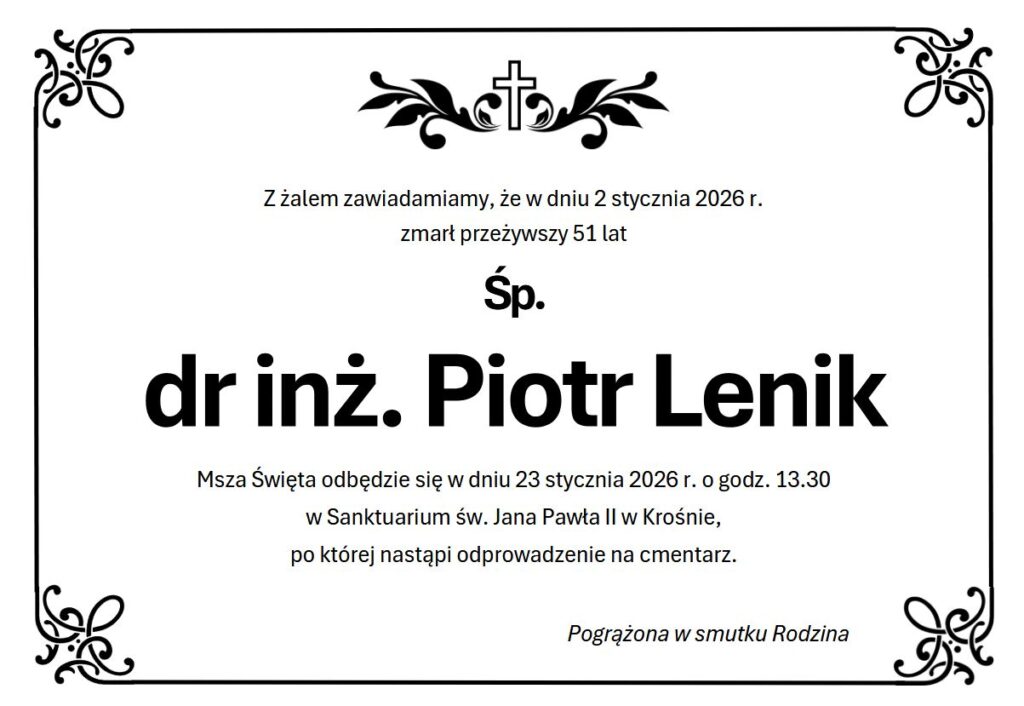 dr inż. Piotr Lenik pracował w naszej Uczelni od 1 października 2003 roku, najpierw na stanowisku asystenta, wykładowcy, starszego wykładowcy, a następnie adiunkta.