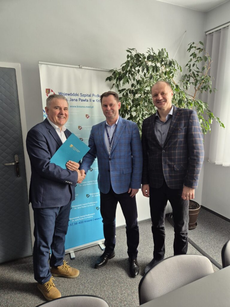 27 stycznia 2026 r. w Szpitalu Specjalistycznym w Brzozowie – Podkarpackim Ośrodku Onkologicznym im. ks. B. Markiewicza, przedstawiciele szpitala – Dyrektor oraz Ordynator Oddziału Ortopedii Onkologicznej spotkali się z władzami PANS w Krośnie: Rektorem dr hab. Zbigniewem Barabaszem, prorektorem ds. studiów dr Krzysztofem Frączkiem oraz dyrektor Instytutu Zdrowia dr Renatą Dziubaszewską. Omówiono dotychczasową współpracę w zakresie kształcenia praktycznego studentów kierunków medycznych oraz możliwości jej rozszerzenia. Spotkanie zakończyło się podpisaniem porozumienia i listu intencyjnego.