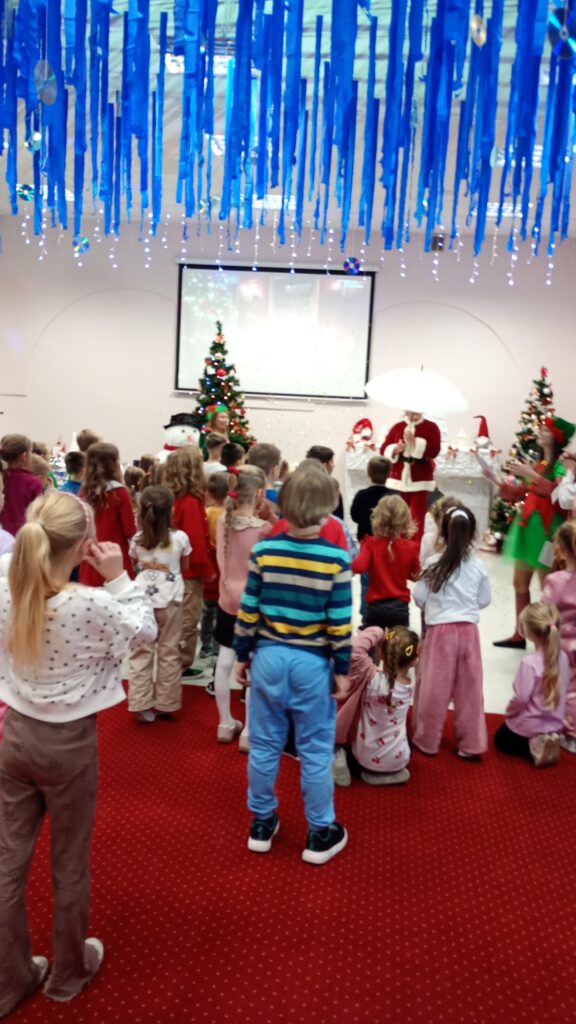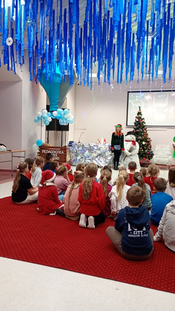 W dniu 9 grudnia 2025 r. studenci II roku pedagogiki zaprosili uczniów z klasy pierwszej oraz dzieci w wieku przedszkolnym na interaktywne spotkanie z Mikołajem, zatytułowane: Śladami Mikołaja, czyli świąteczna misja ratunkowa. Wspólna zabawa różnowiekowej grupy obejmowała uczestnictwo w szeregu zadań i aktywności. Uczestnicy spotkania rozwiązywali rebusy, aby odnaleźć drogę do świętego Mikołaja. Ponadto uczestniczyli w zabawach i grach ruchowych, plastycznych oraz muzycznych. Spotkali też wiele ciekawych postaci: elfy, renifery, anioły, piratów oraz księżniczki. Spotkanie zakończyły wspólne tańce Mikołaja i dzieci przy muzyce. W spotkanie z Mikołajem zaangażowani byli studenci II roku pedagogiki pod kierunkiem dr Barbary Lulek. W spotkaniu uczestniczył także mgr Szymon Uliasz. Gratulujemy studentom udanego spotkania! Poniżej zamieszczamy dokumentację fotograficzną.