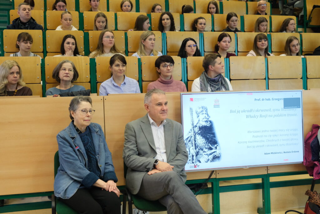 Pełna aula Państwowej Akademii Nauk Stosowanych w Krośnie przy ul. Kazimierza Wielkiego była świadectwem ogromnego zainteresowania, z jakim spotkał się tytuł wykładu prof. Grzegorza Przebindy: „Boś ją ukradł i skrwawił, synu Wasilowy! Władcy Rosji na polskim tronie”. Nie tylko jednak w Krośnie można było uczestniczyć w tym wydarzeniu.