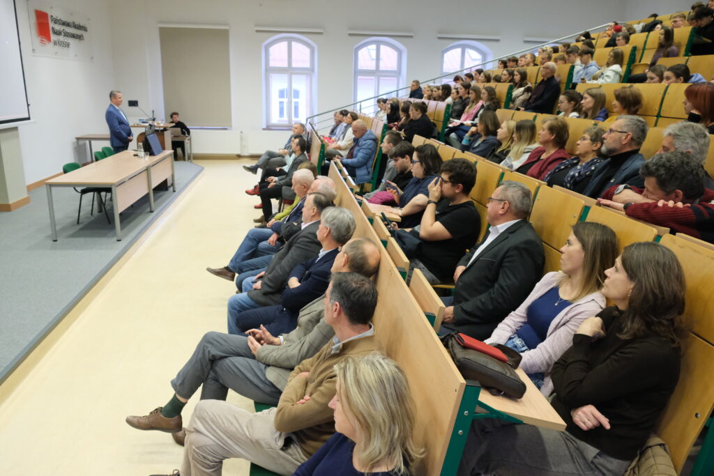 Wykład był nie tylko akademicką lekcją historii, ale przede wszystkim holistycznym spojrzeniem na to, jak wydarzenia z przeszłości naszego kraju odbijają się na bieżących wydarzeniach i jak mogą również wpływać na przyszłość Polski i regionu. Z tego właśnie powodu ważne było uczestnictwo ludzi młodych — studentów PANS w Krośnie oraz uczniów szkół z Krosna, Jasła i Jedlicza.
