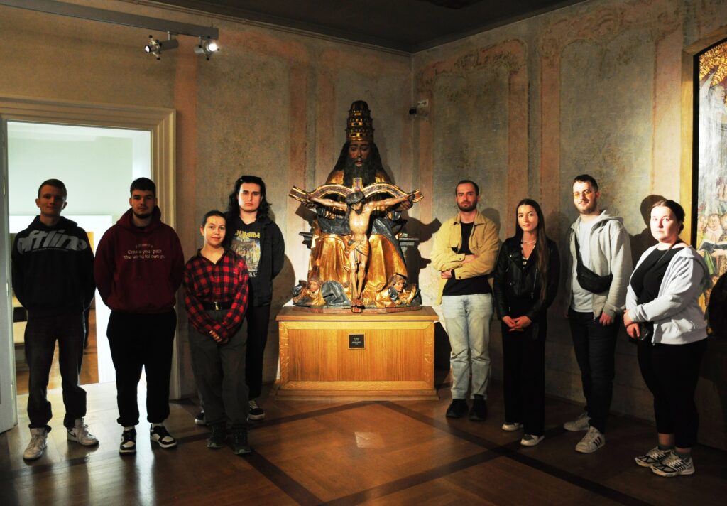 Ze wzgórza wawelskiego zeszliśmy na ul Kanoniczą, gdzie kolejną godziną poświęciliśmy na zwiedzenie zbiorów sztuki dawnej w Oddziale Muzeum Narodowego, w dawnym Pałacu Biskupa Erazma Ciołka. Tu studenci mogli zapoznać się z unikatowymi zabytkami malarstwa i rzeźby średniowiecznej i nowożytnej Małopolski, w tym licznie reprezentowanymi eksponatami zakupionymi w roku 1915 przez Feliksa Koperę w Krośnie, pochodzącymi z krośnieńskiego kościoła parafialnego. W Muzeum Narodowym studenci mieli również okazję zapoznać się z cennymi zbiorami malarstwa ikonowego.