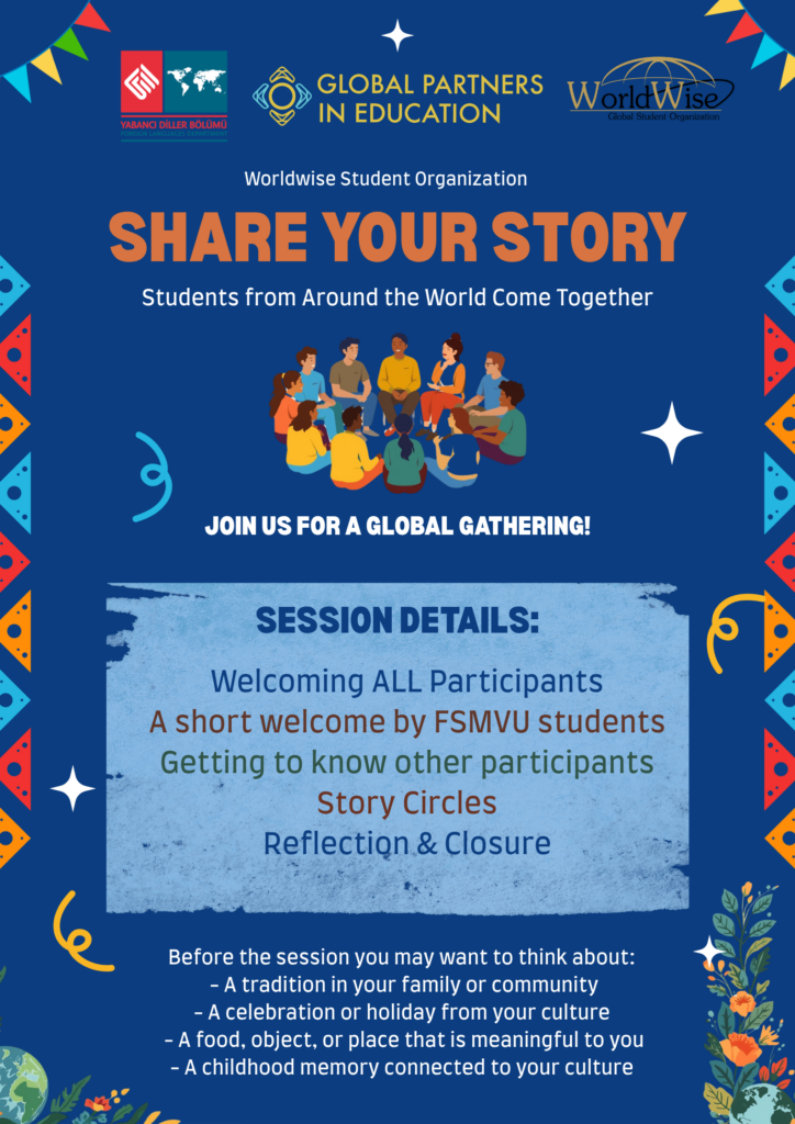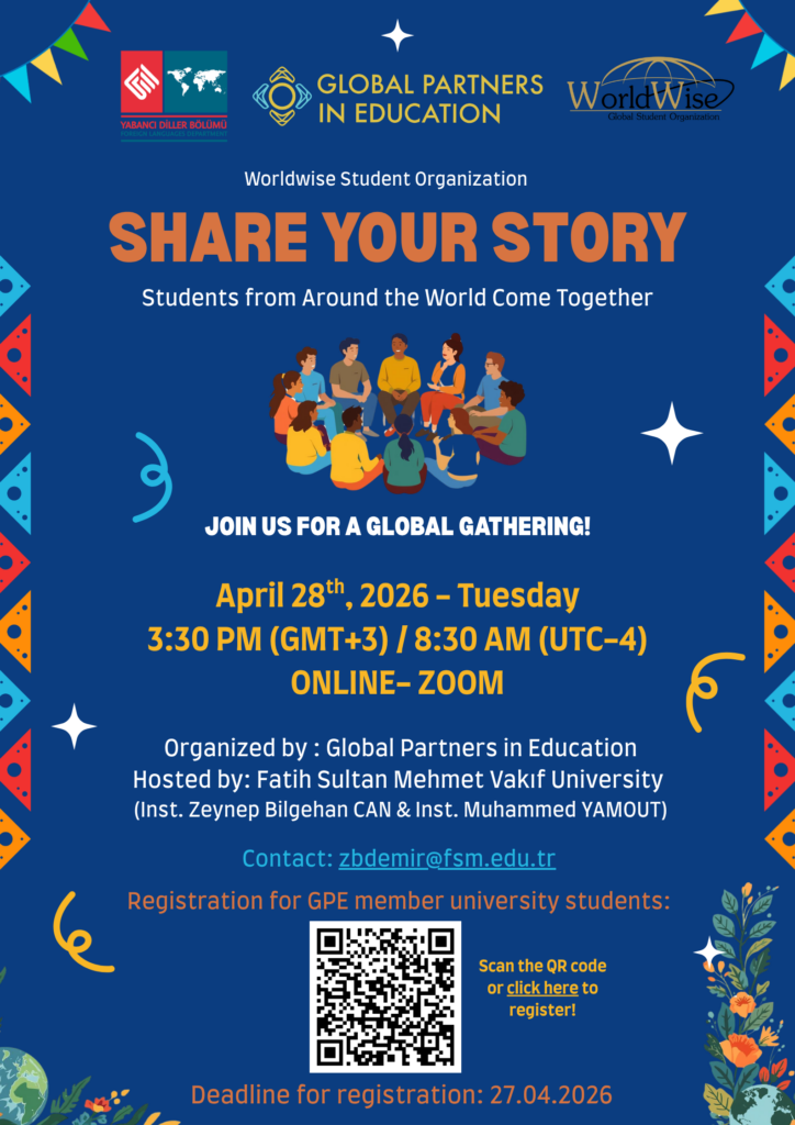 Zapraszamy Cię na „Share Your Story” – wyjątkowe wydarzenie online organizowane przez Global Partners in Education oraz WorldWise, którego gospodarzem jest Fatih Sultan Mehmet Vakıf University.