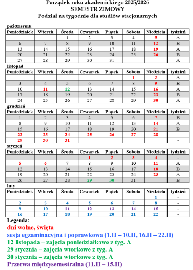 I rok sem. zimowy 2025/2026 Harmonogram Excel