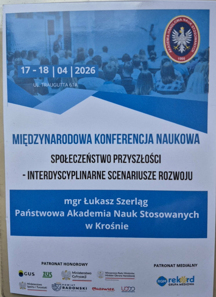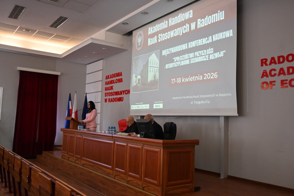 W dniu 17 kwietnia 2026 r. w Akademii Handlowej Nauk Stosowanych w Radomiu odbyła się Międzynarodowa Konferencja Naukowa pt. „Społeczeństwo Przyszłości – Interdyscyplinarne Scenariusze Rozwoju. Celem konferencji była integracja środowisk naukowych i praktyków oraz wymiana wiedzy, a także wsparcie innowacji i rozwoju kompetencji młodych badaczy.