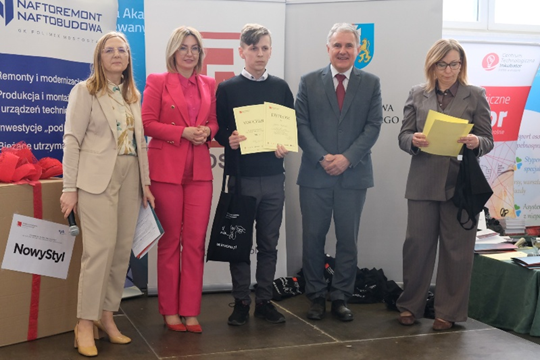 Jakub Wyderka odbiera dyplom i nagrody.