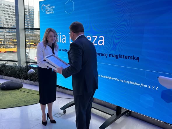 Praca zatytułowana „Wpływ cyfryzacji procesów produkcyjnych na efektywność przedsiębiorstw na przykładzie firm X, Y, Z” uzyskała III miejsce w kategorii najlepszych prac magisterskich. Promotorem nagrodzonej pracy był dr inż. Piotr Lenik.